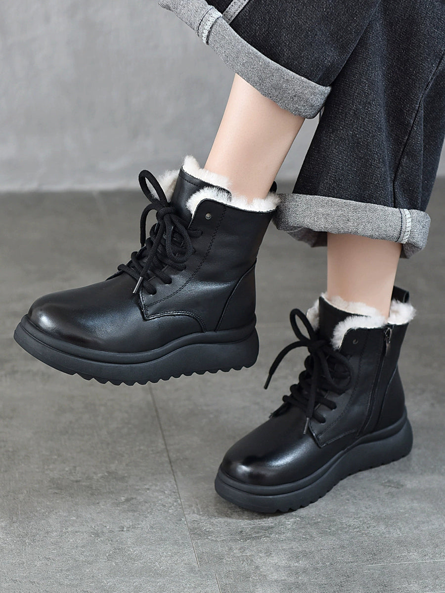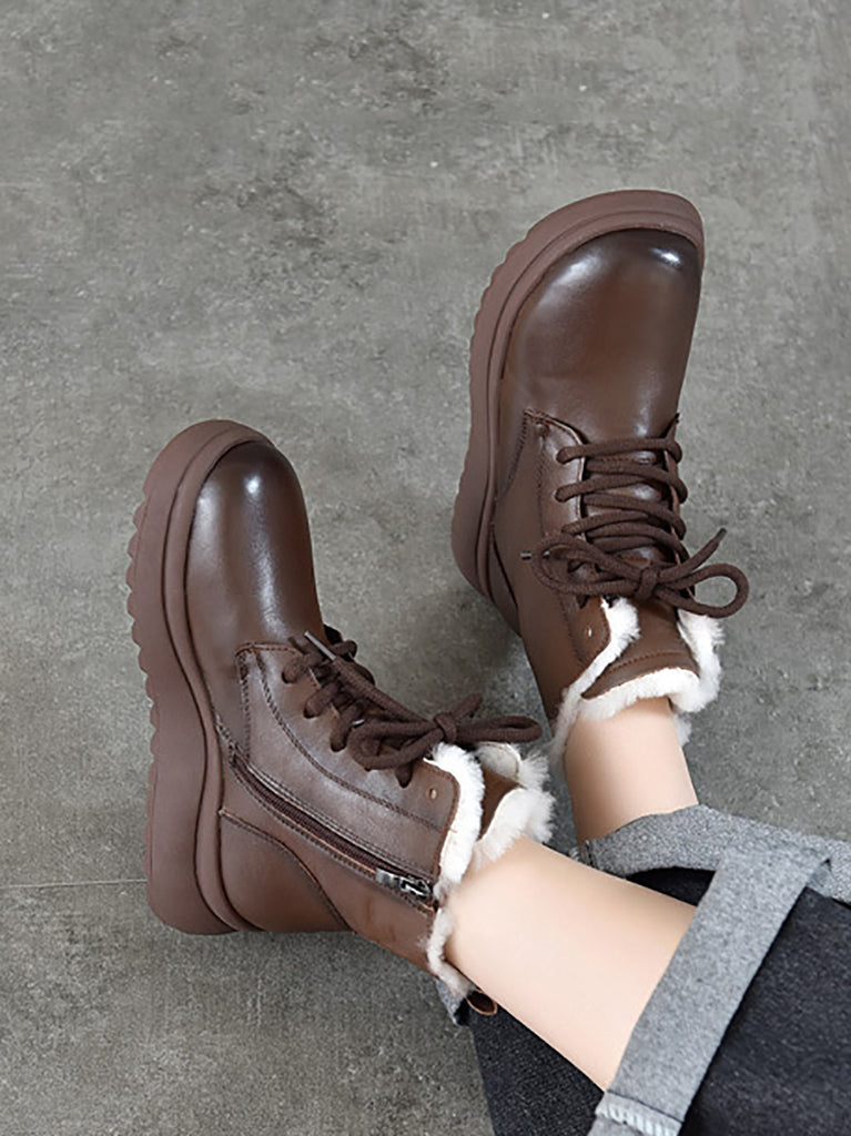 Stivaletti invernali da donna in vera pelle foderati in pile