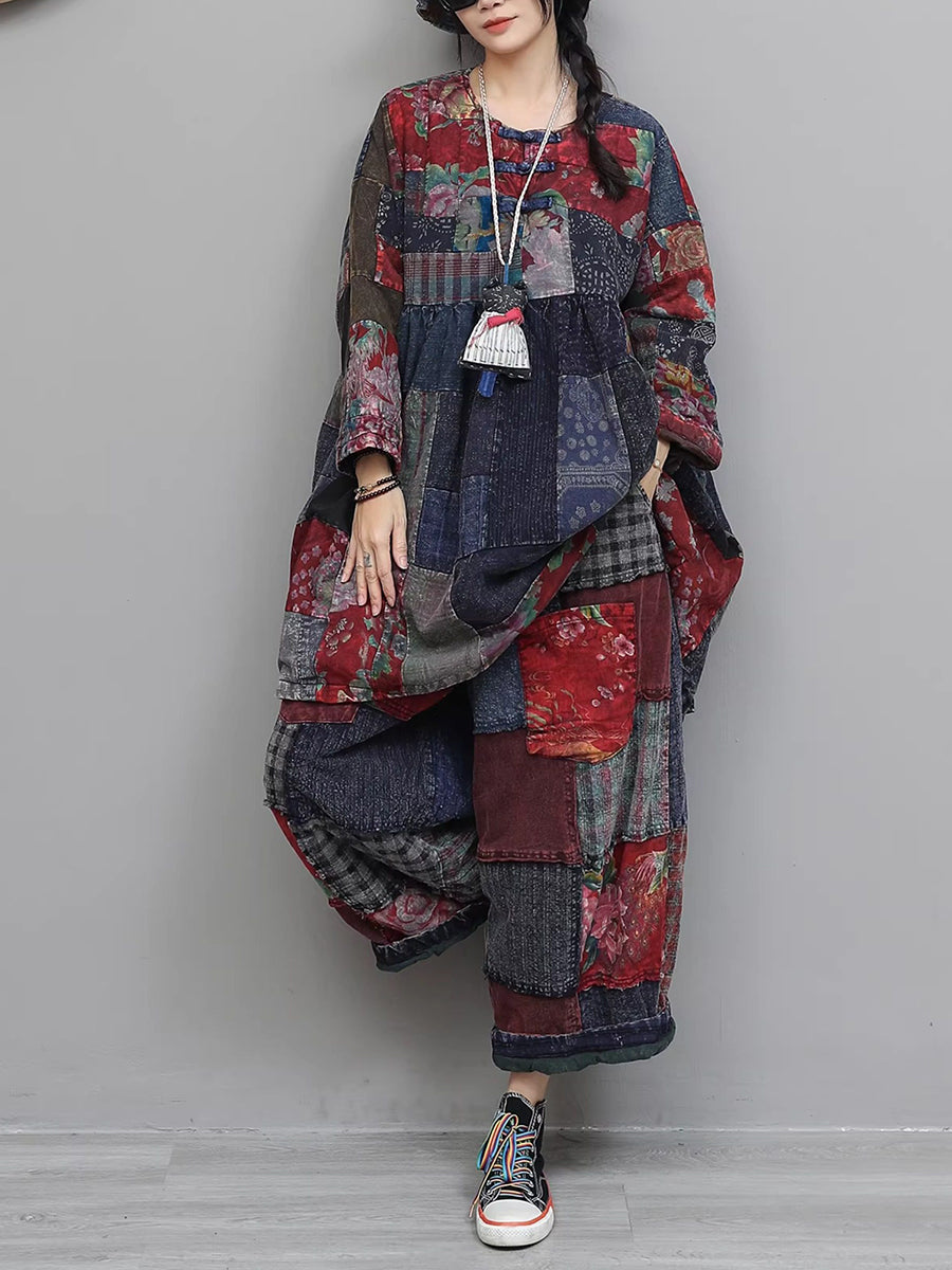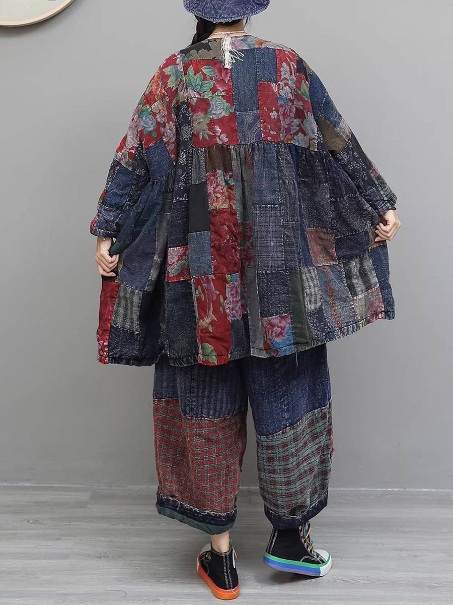 Tute imbottite invernali da donna con scollo a V e toppe retrò