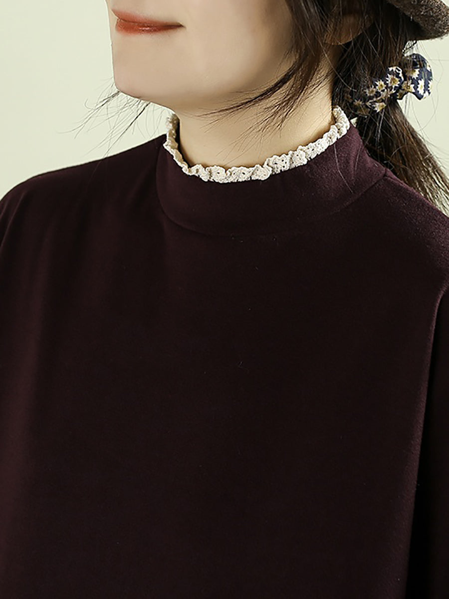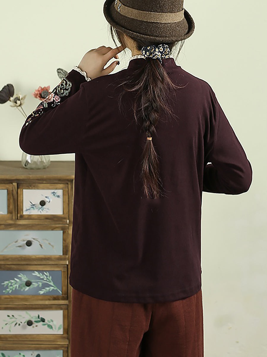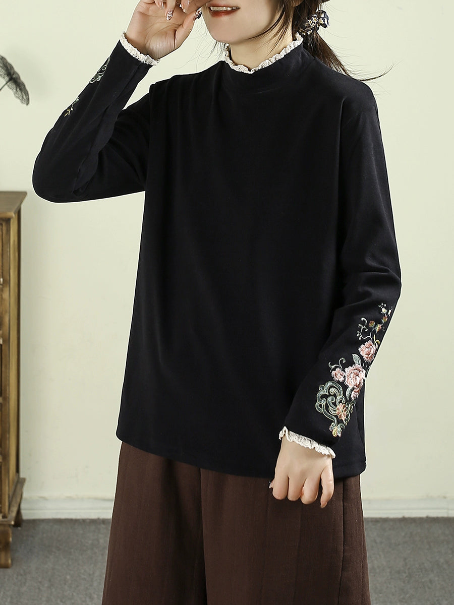 レディース 冬 アーティスティック 刺繍 ハーフタートルネック ブラウス