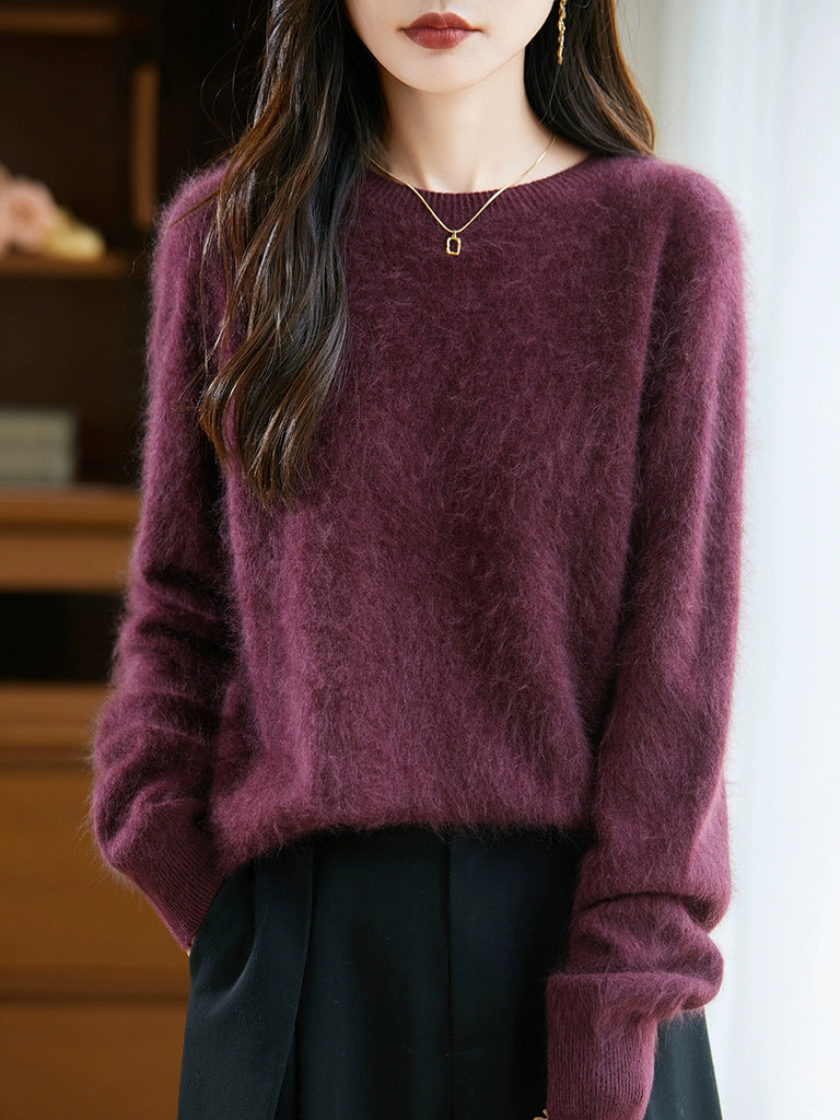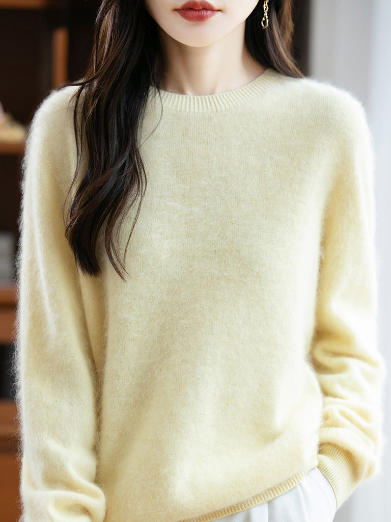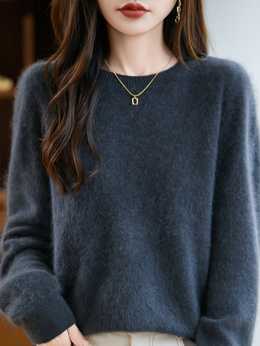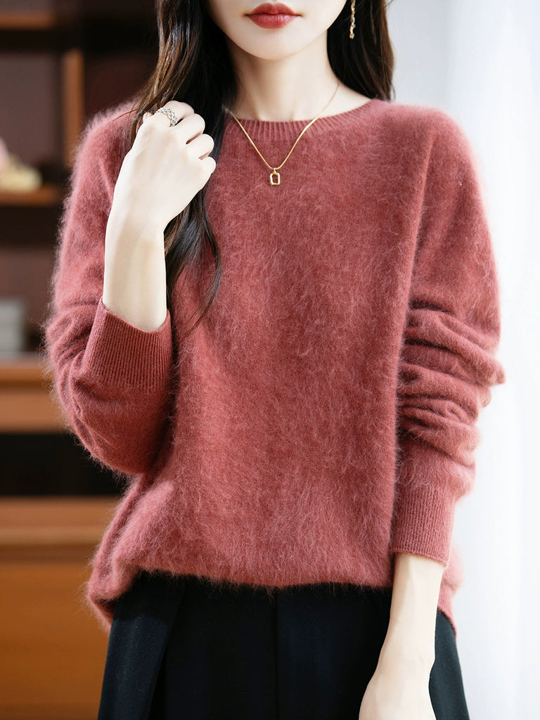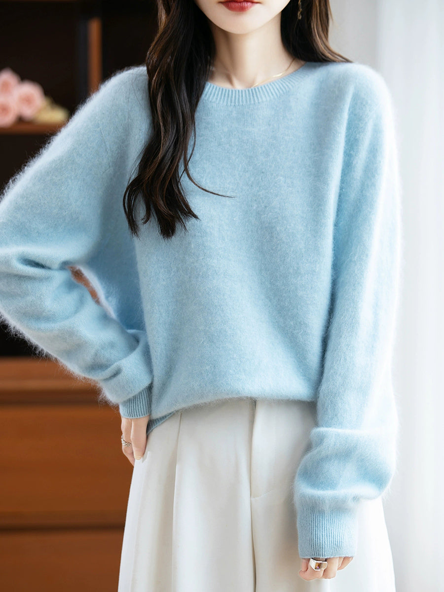 レディース 冬用 ピュアカラー Oネック ウールセーター