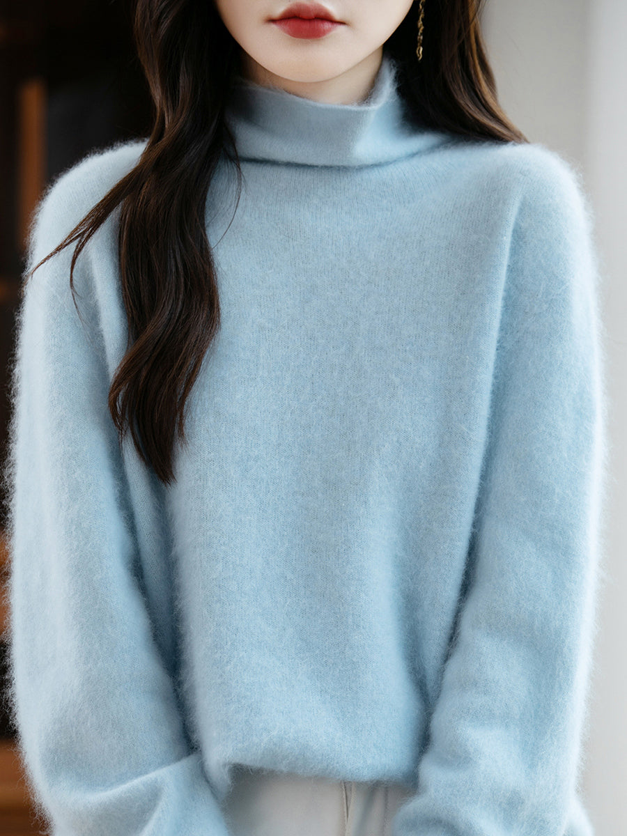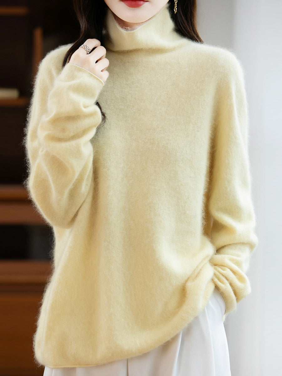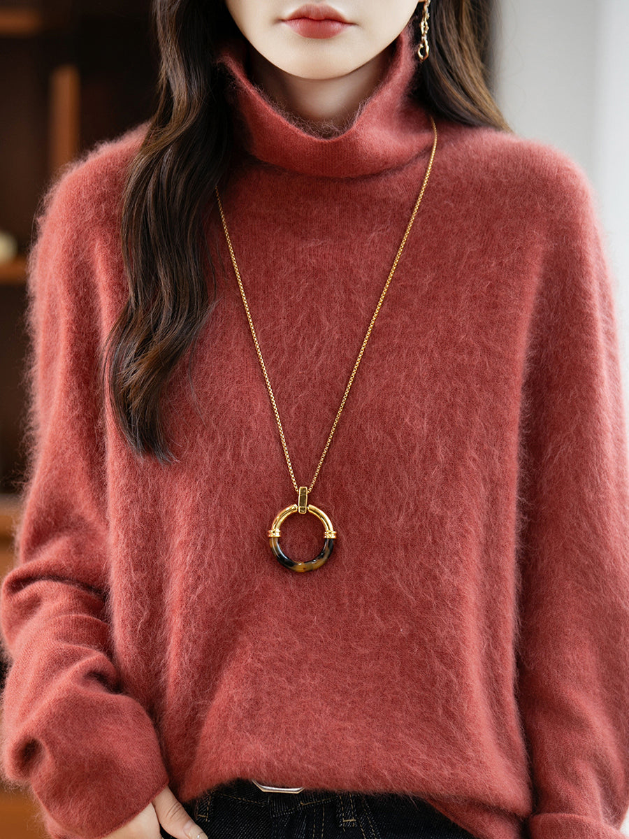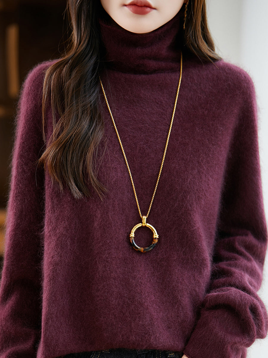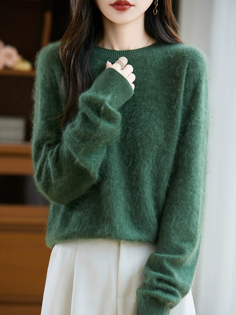 レディース 冬用 ピュアカラー Oネック ウールセーター