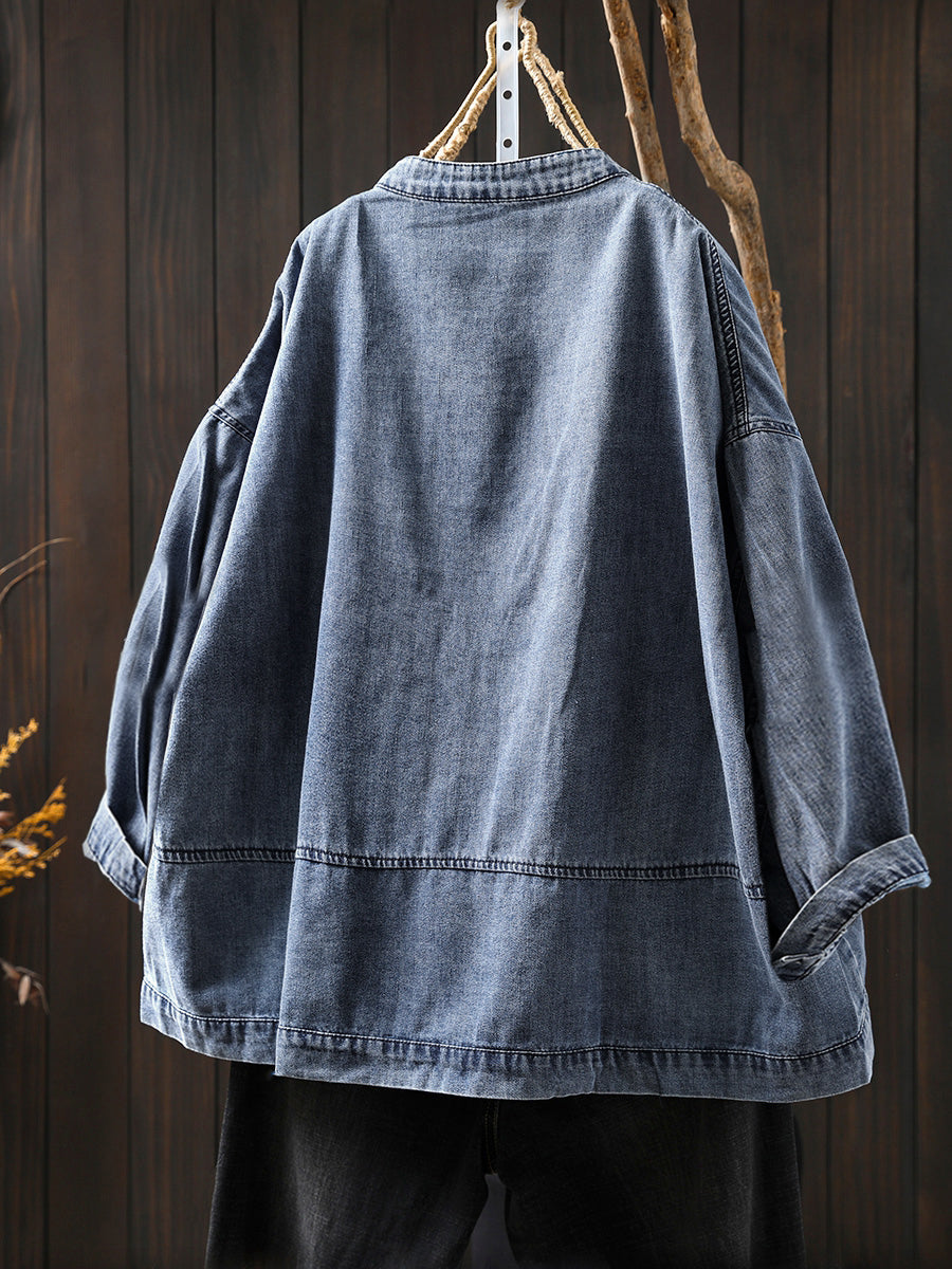 プラスサイズ レディース 夏 レトロ ピュアカラー スタンドカラー デニムコート