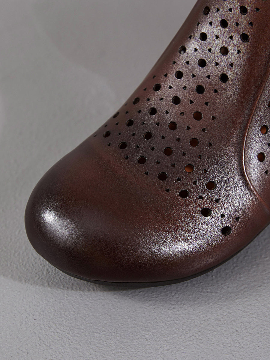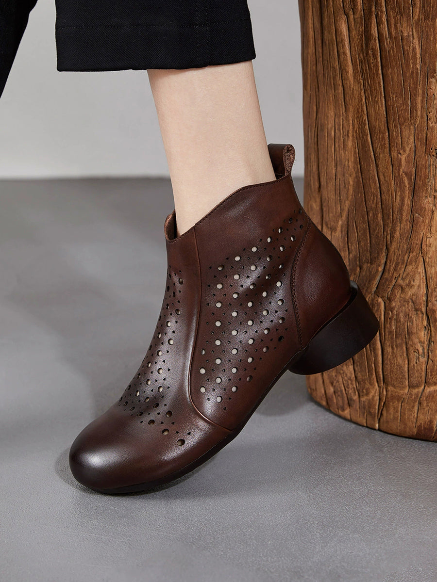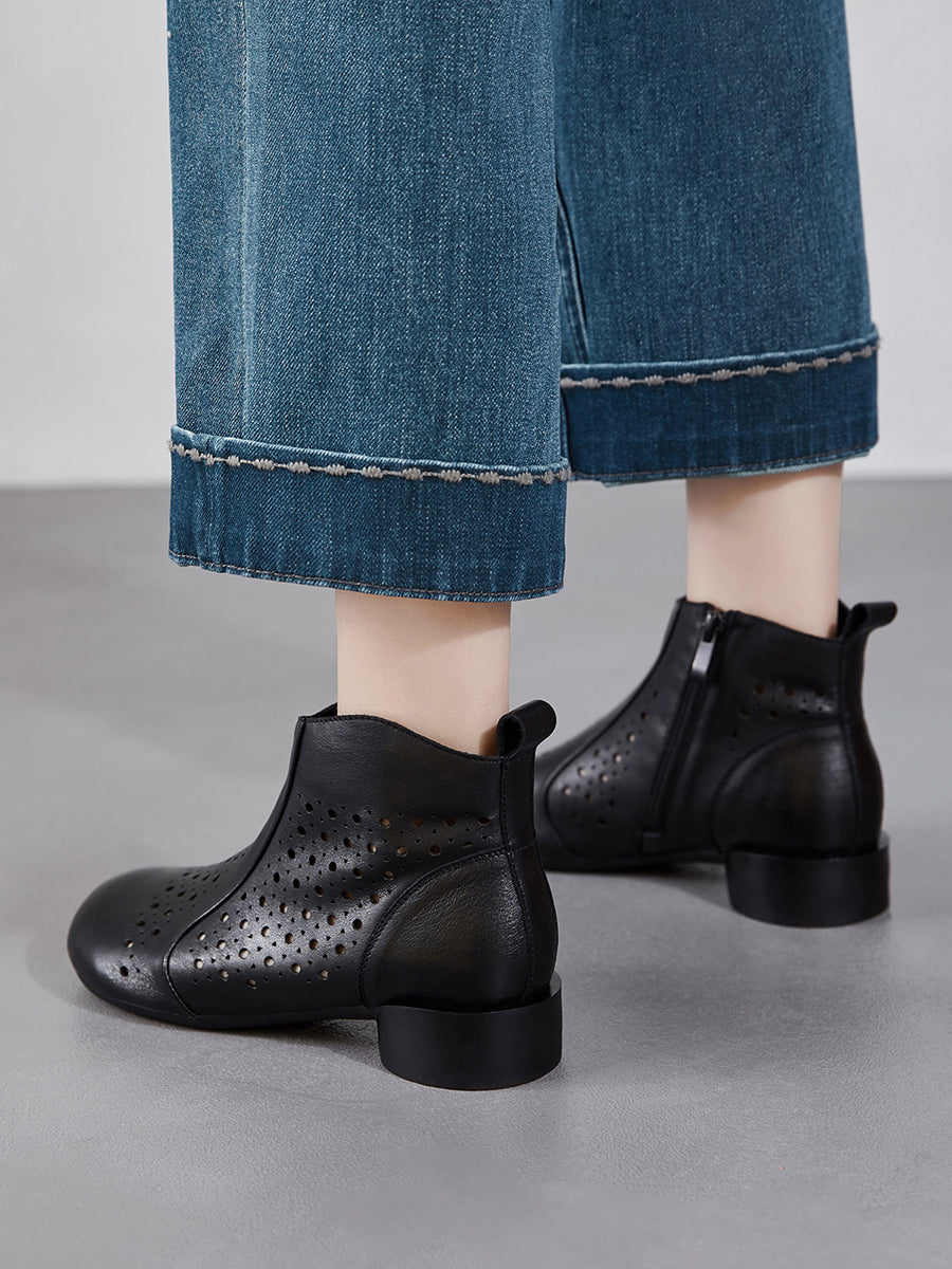 レディース本革ホローアウトローヒールブーツ
