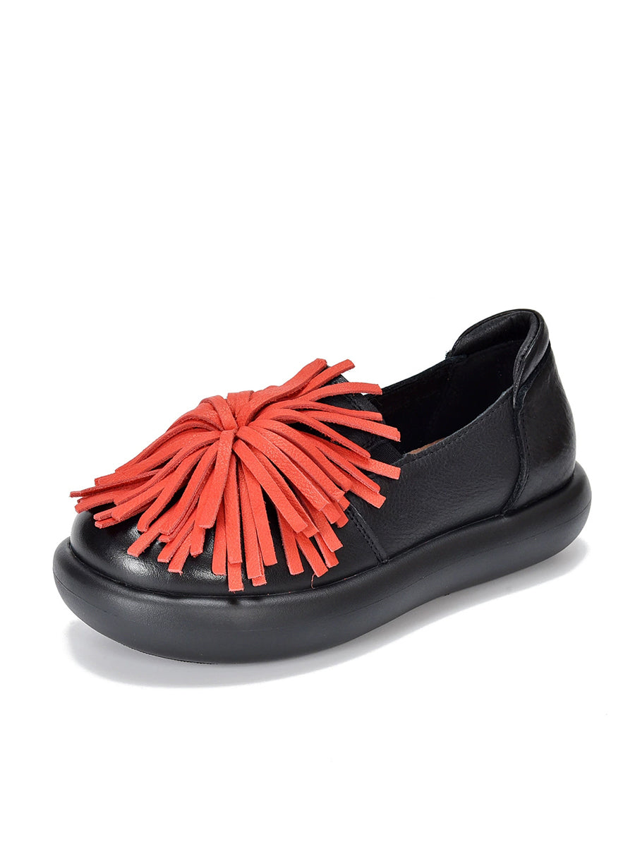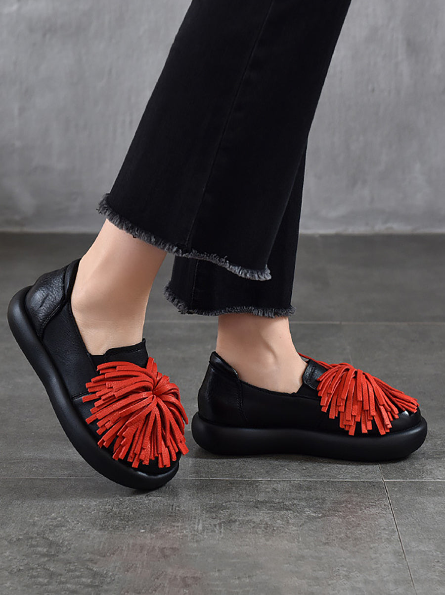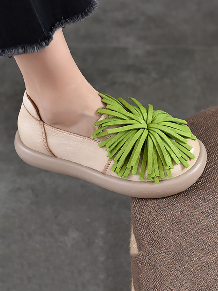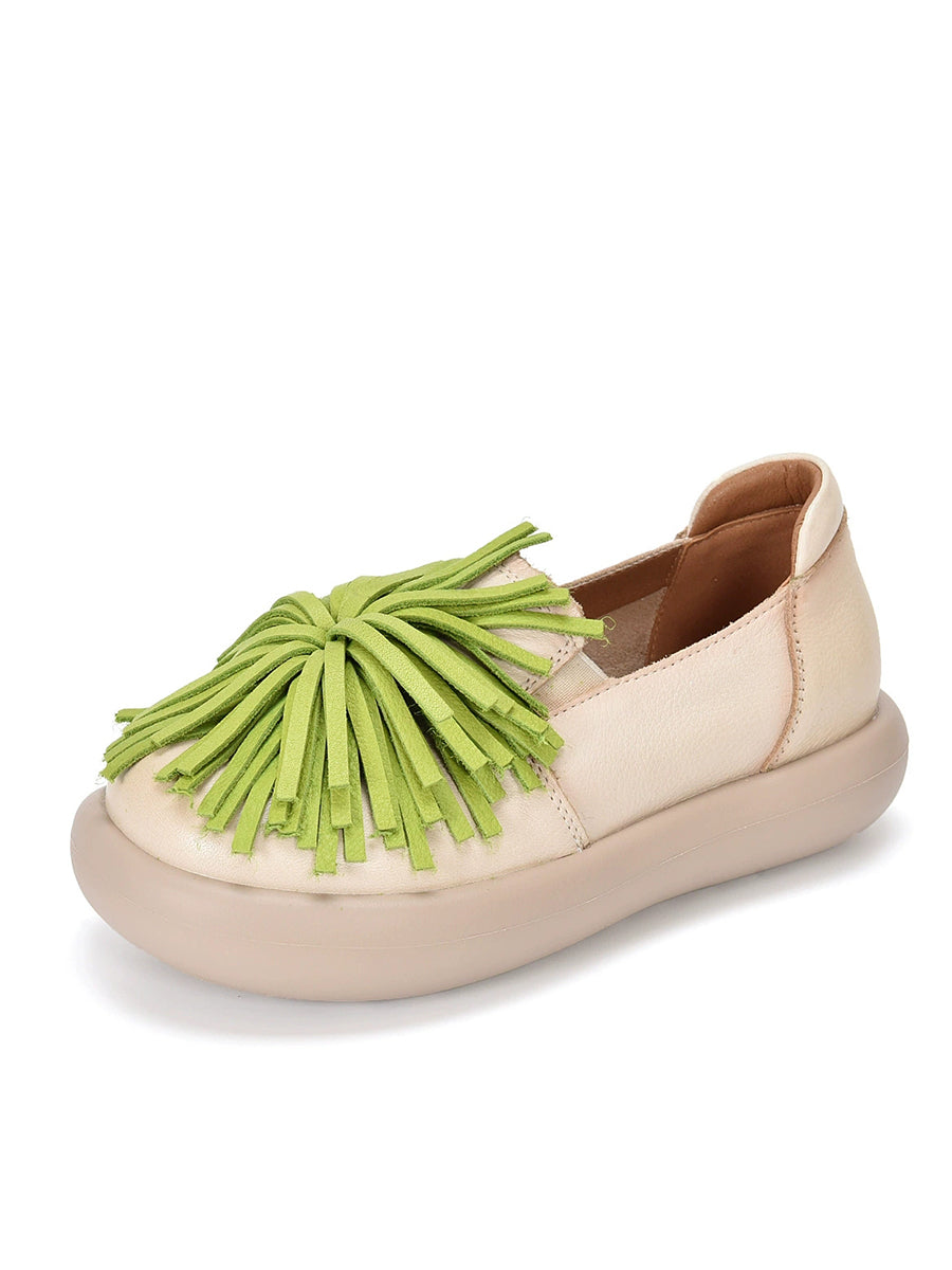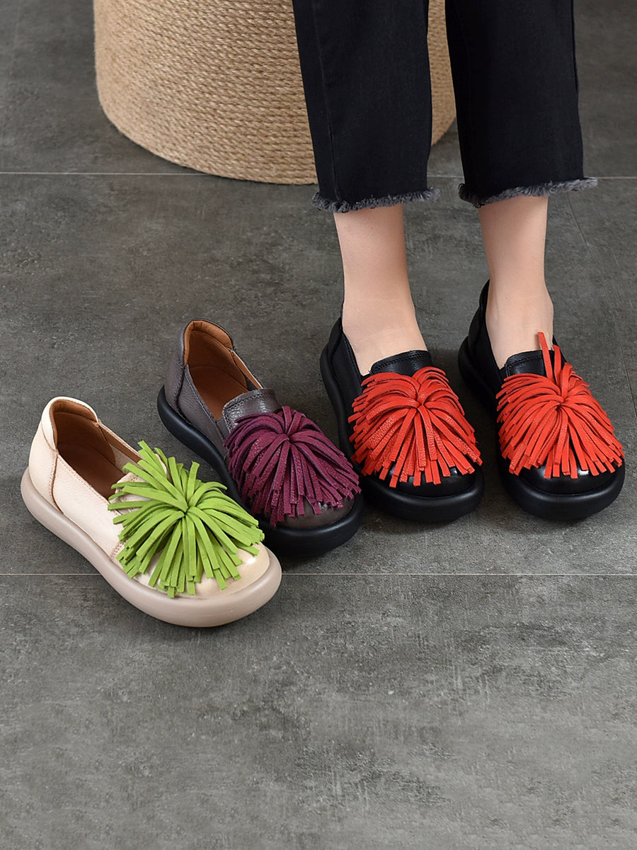レディース 春 カジュアル 本革 タッセル フラットシューズ