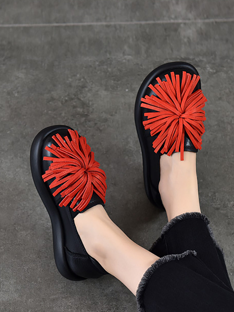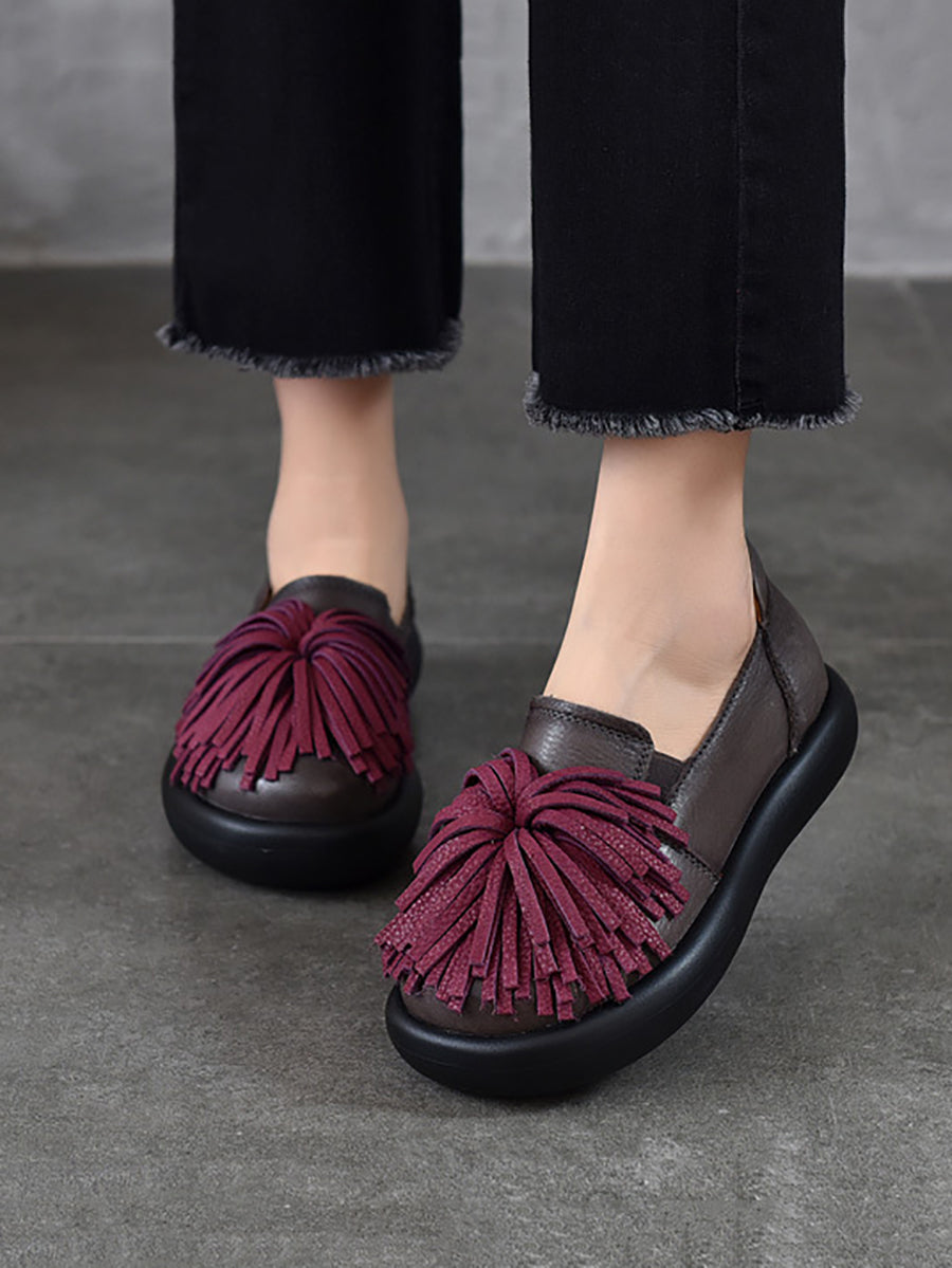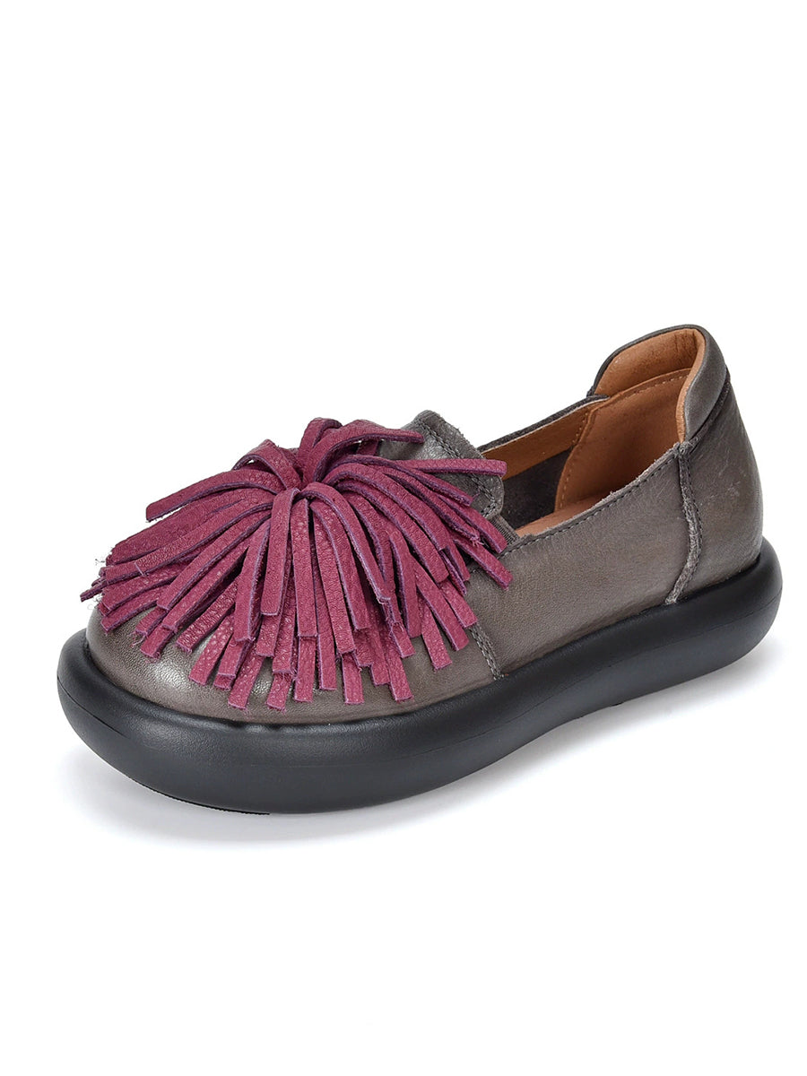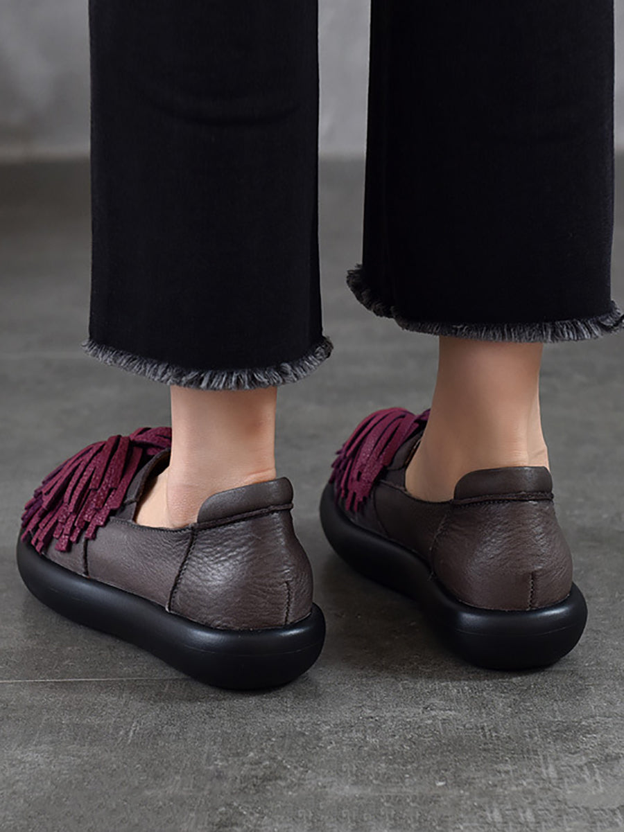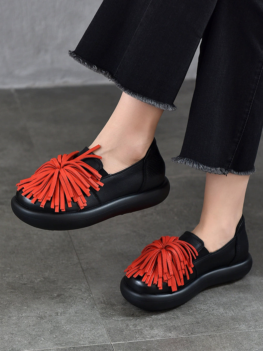 レディース 春 カジュアル 本革 タッセル フラットシューズ