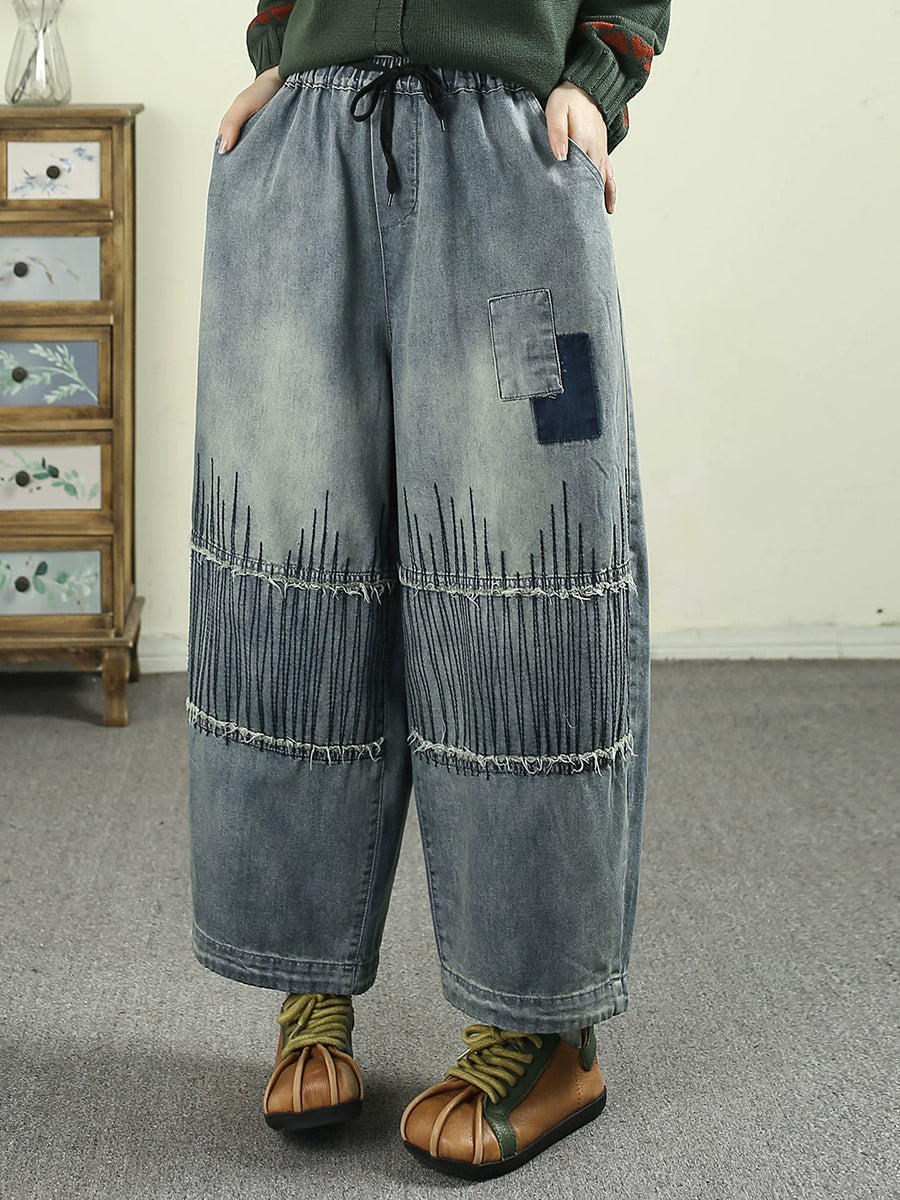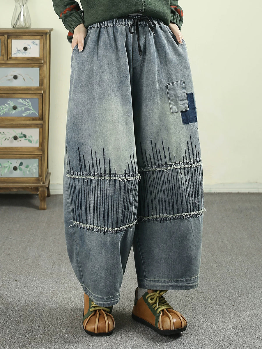 レディース 春 ヴィンテージ デニム パッチワーク ハーレムパンツ