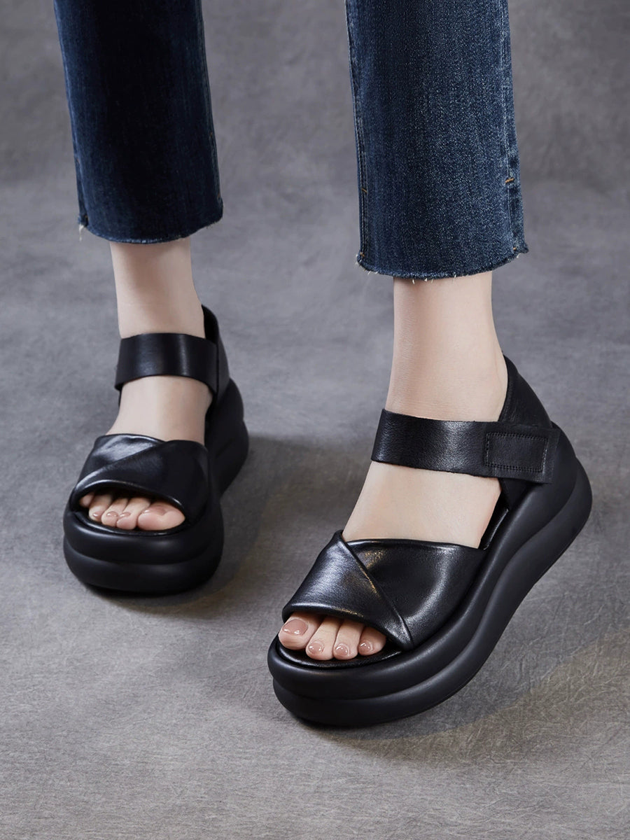 レディース 夏用 本革プラットフォームサンダル