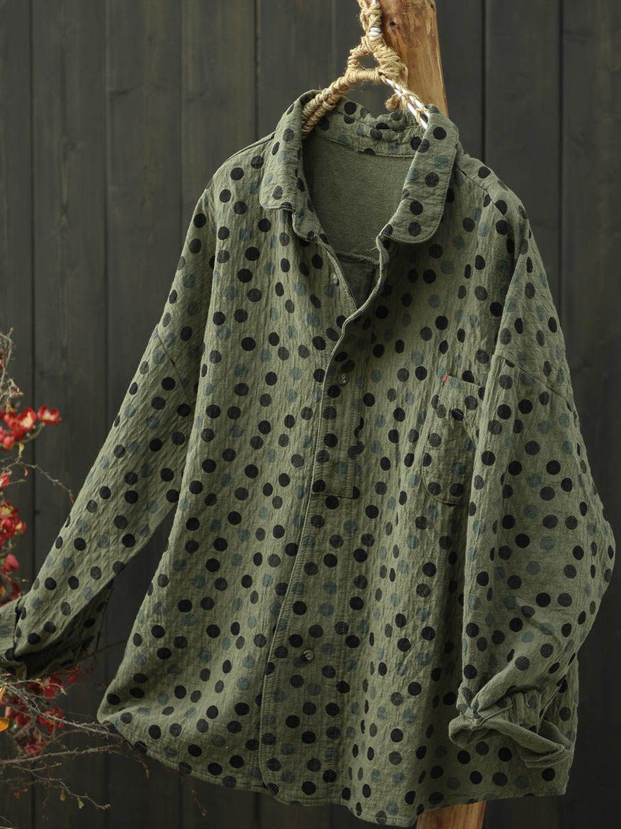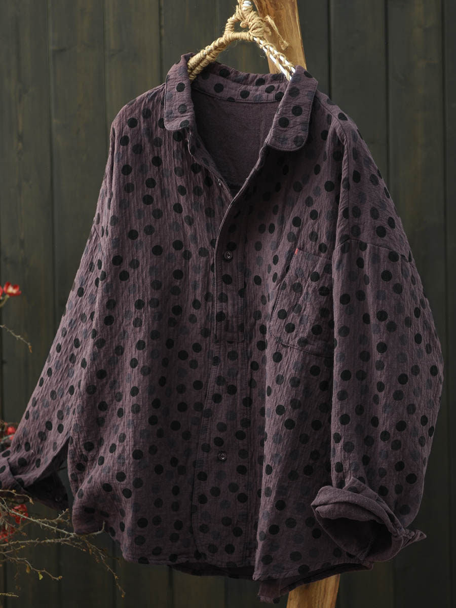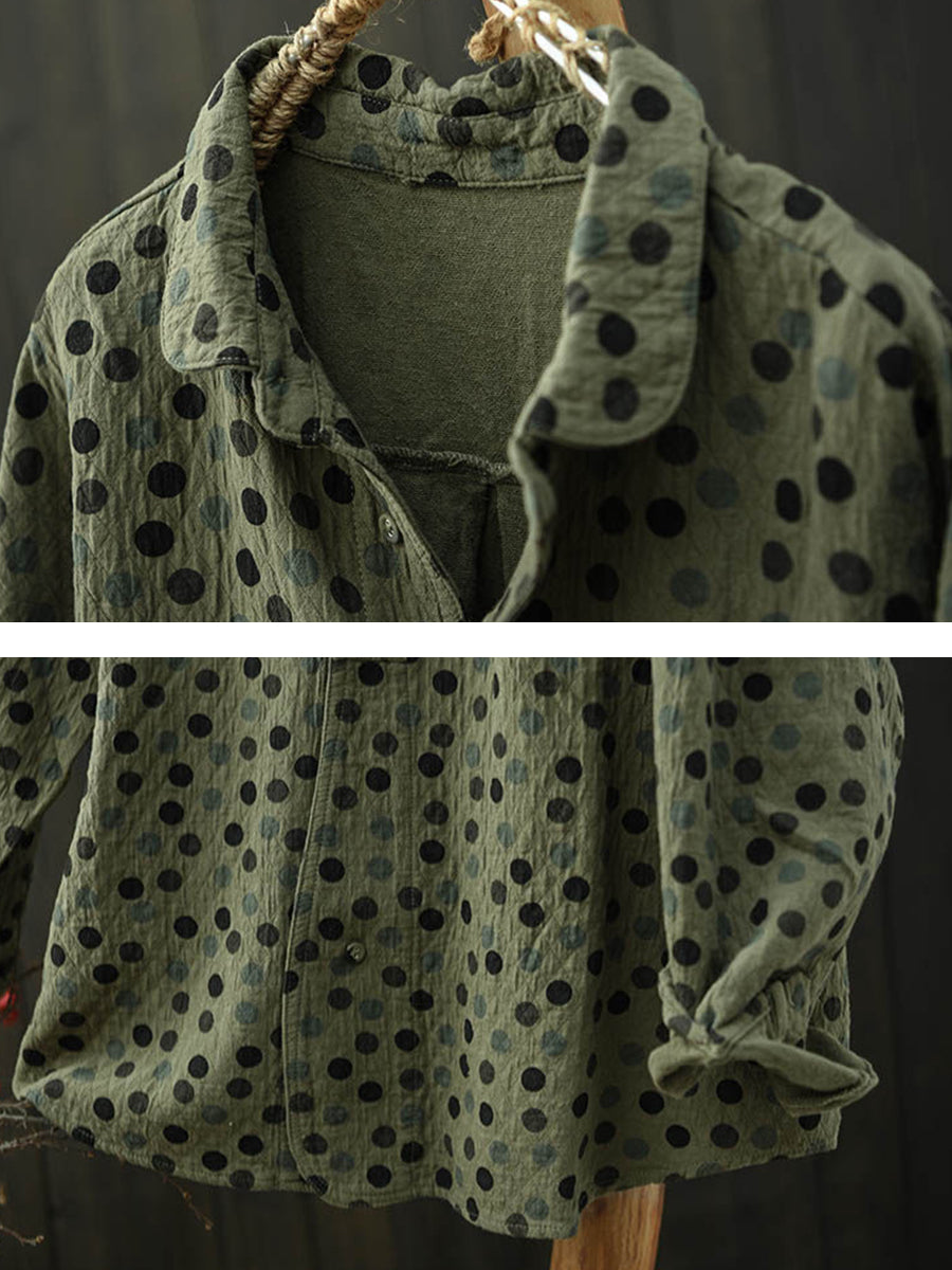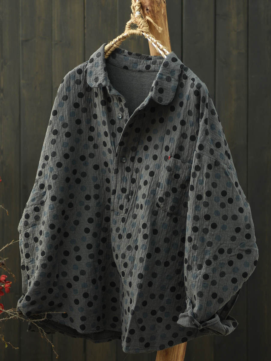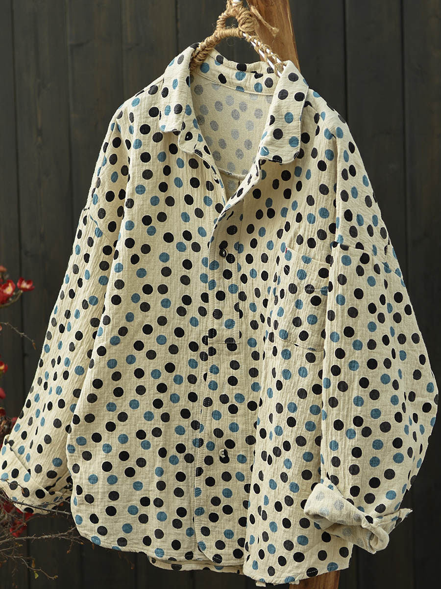 Dames katoenen shirt met V-hals en artistieke stippen voor de herfst