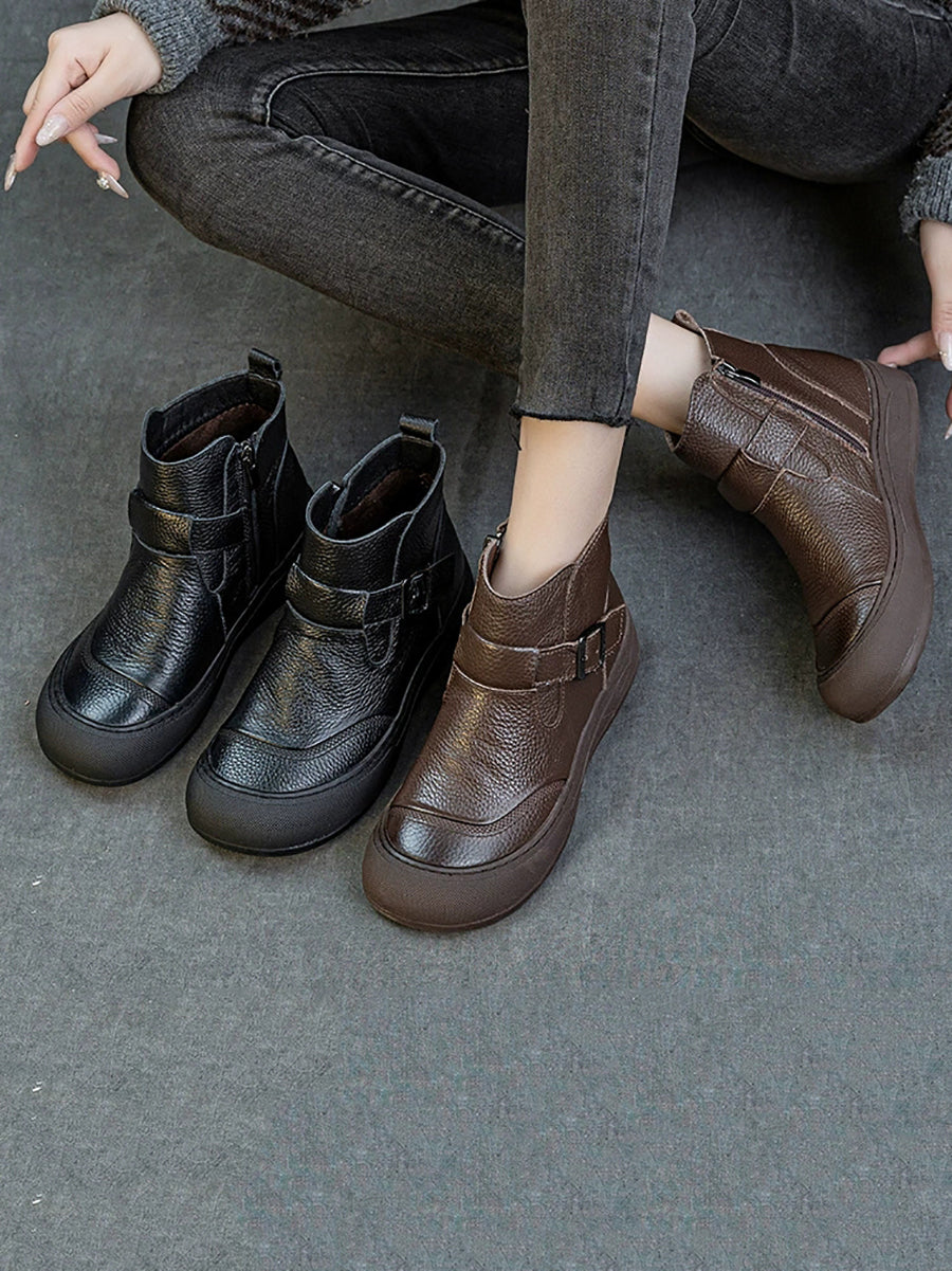 Dames winter enkellaarsjes van echt leer met split