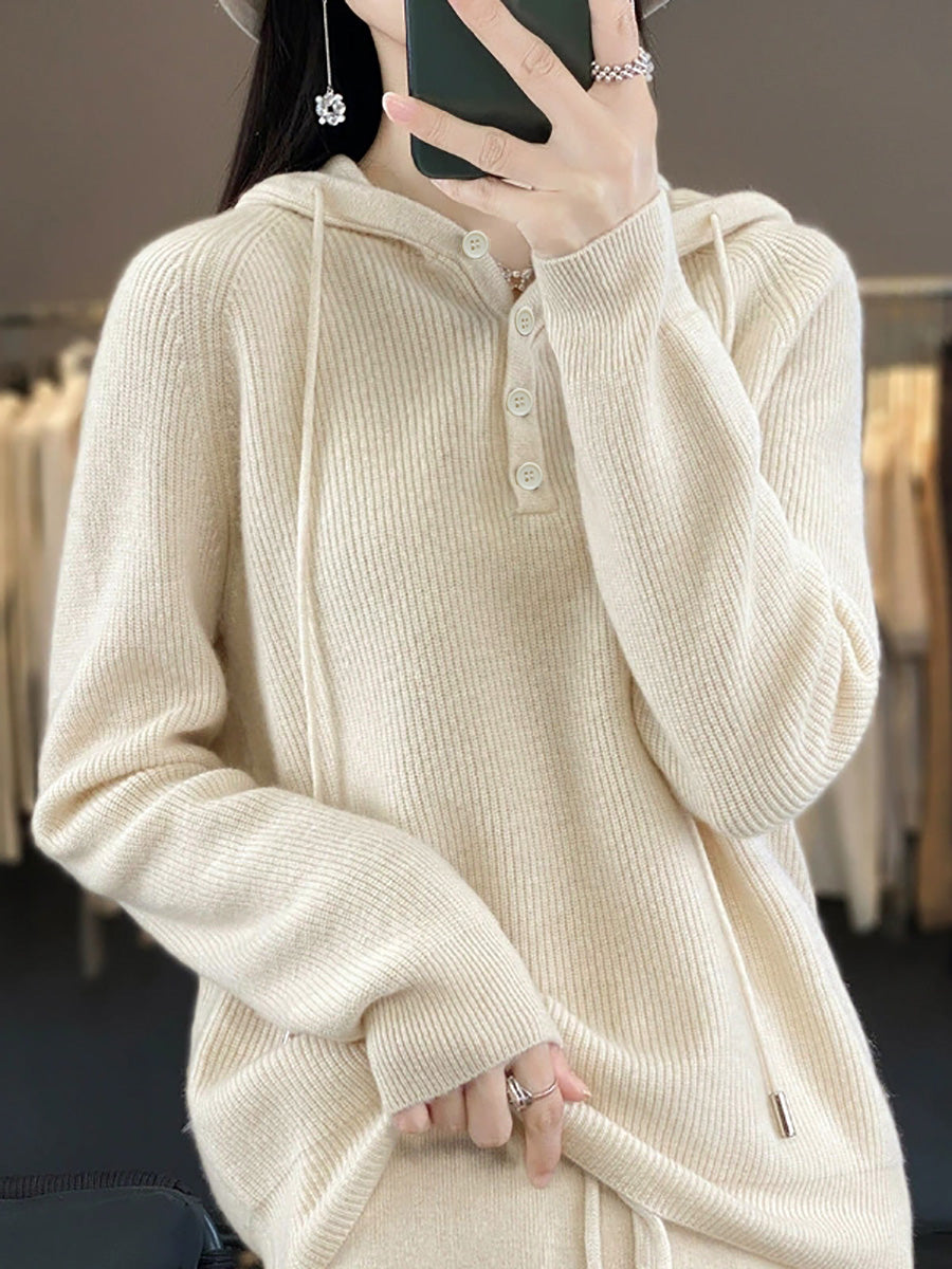 Dames herfst casual pure kleur gebreide capuchontrui