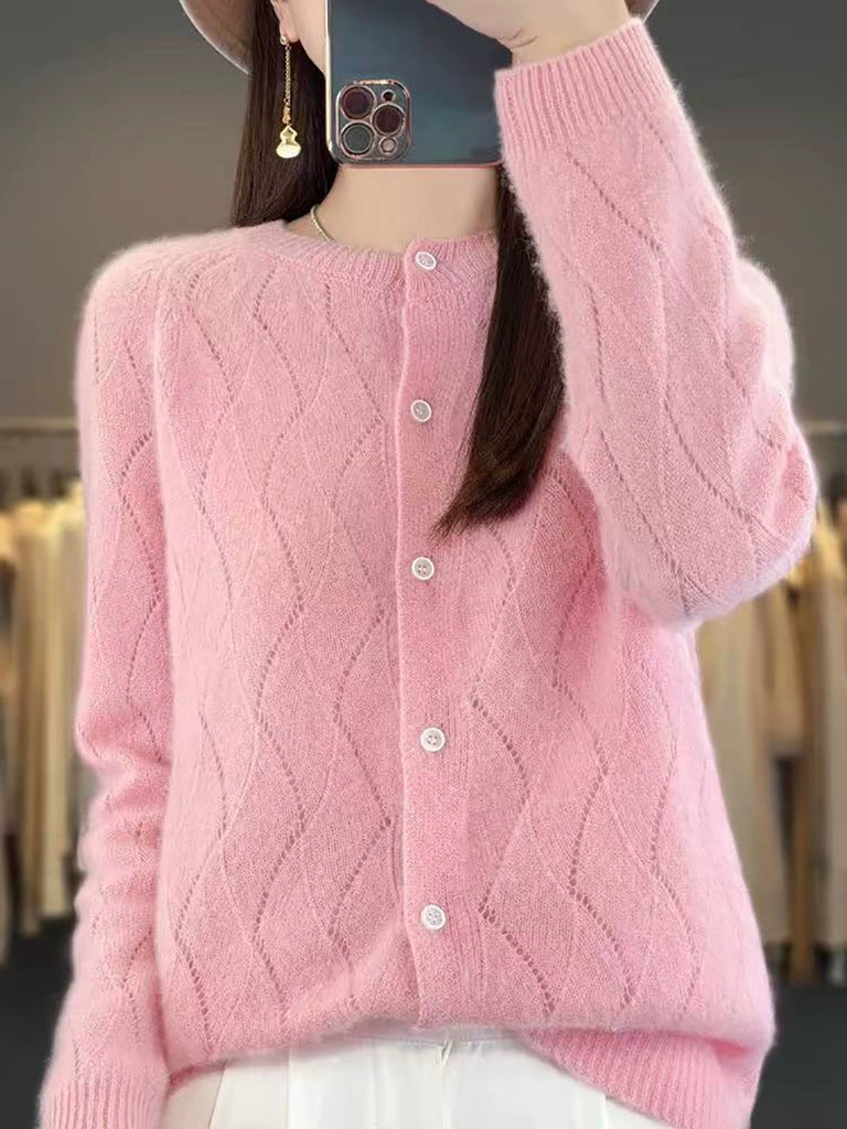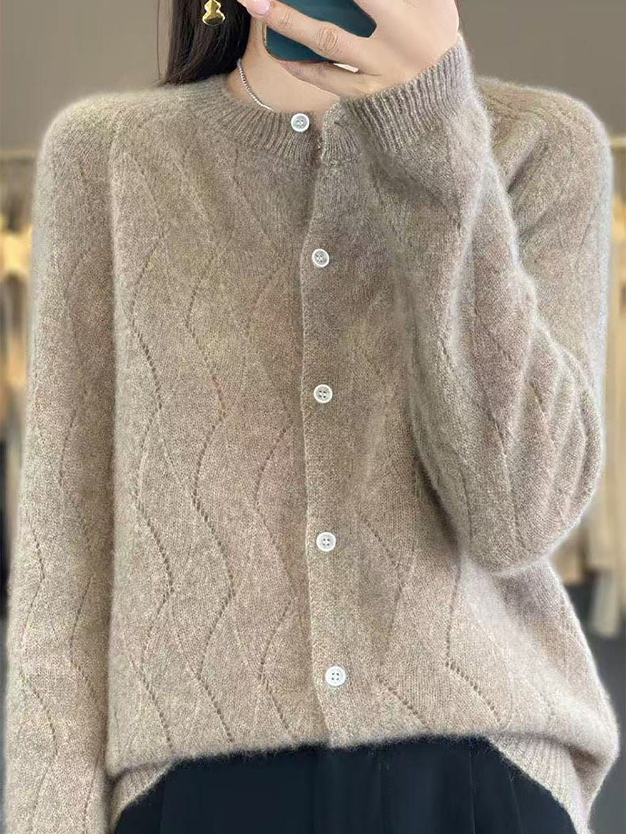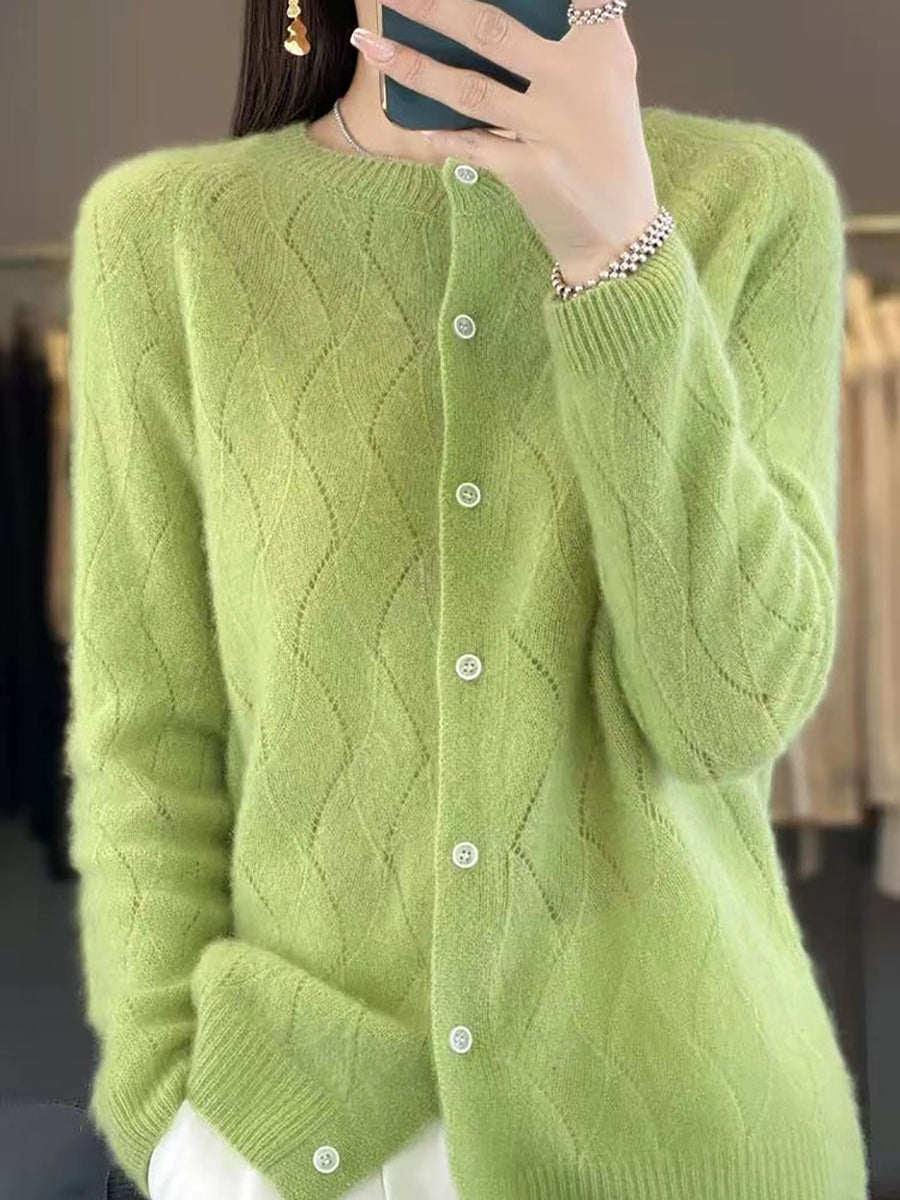 Dames Winter Pure Color Gebreide O-hals Cardigan Trui