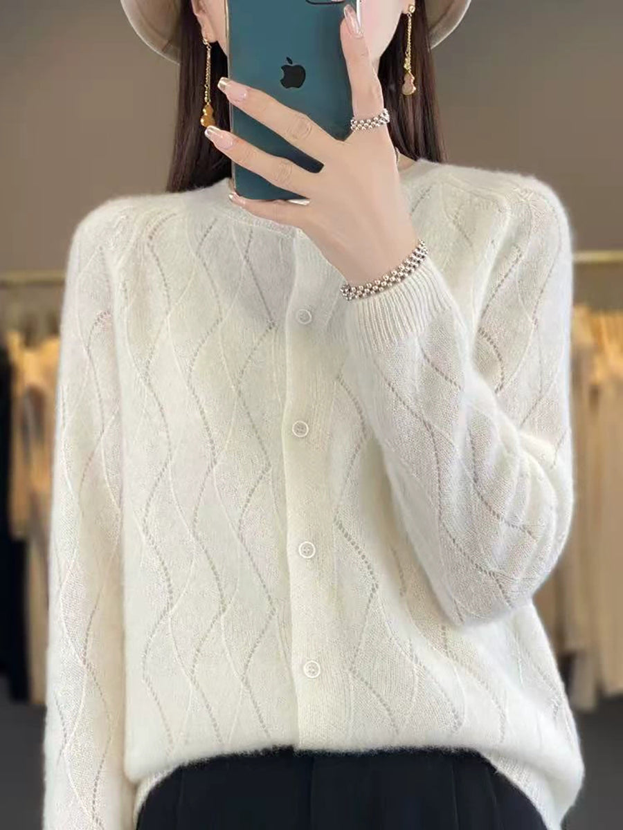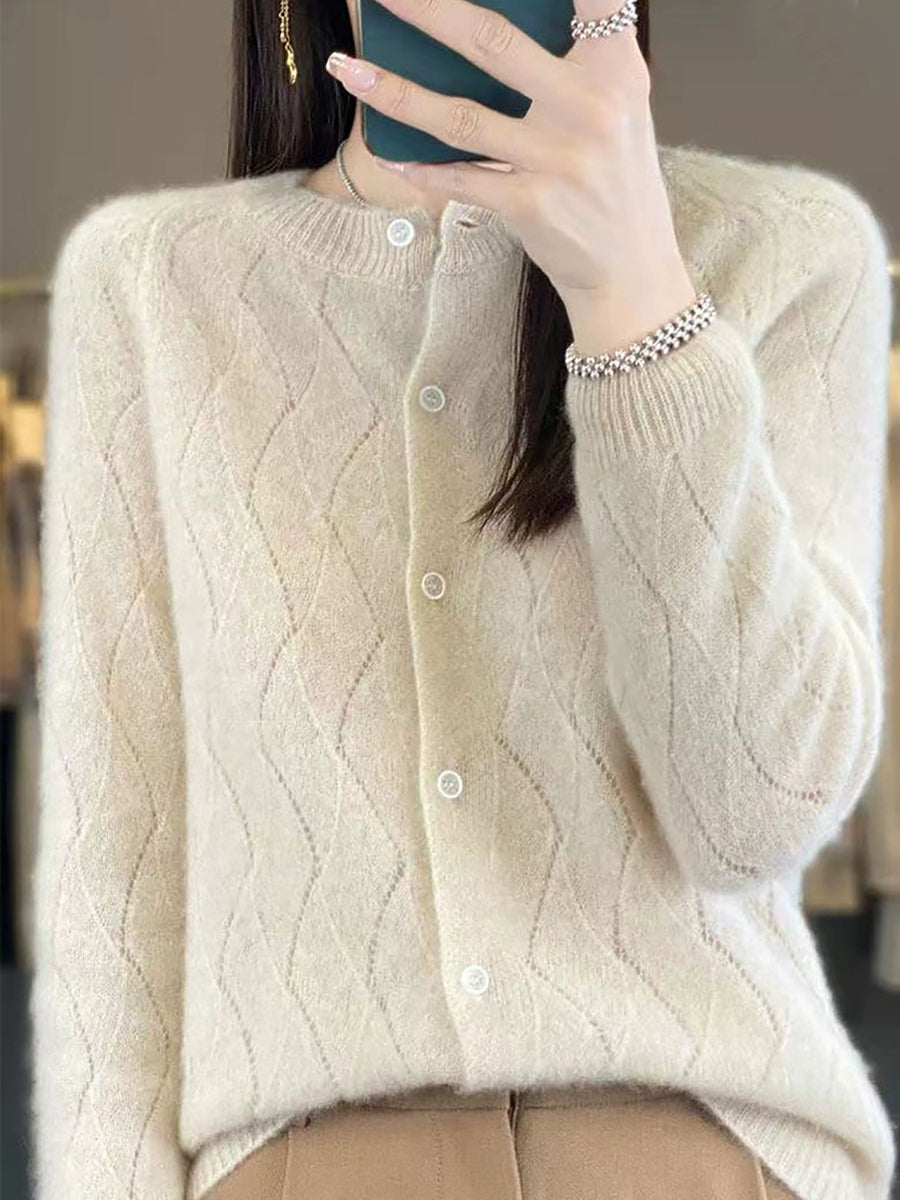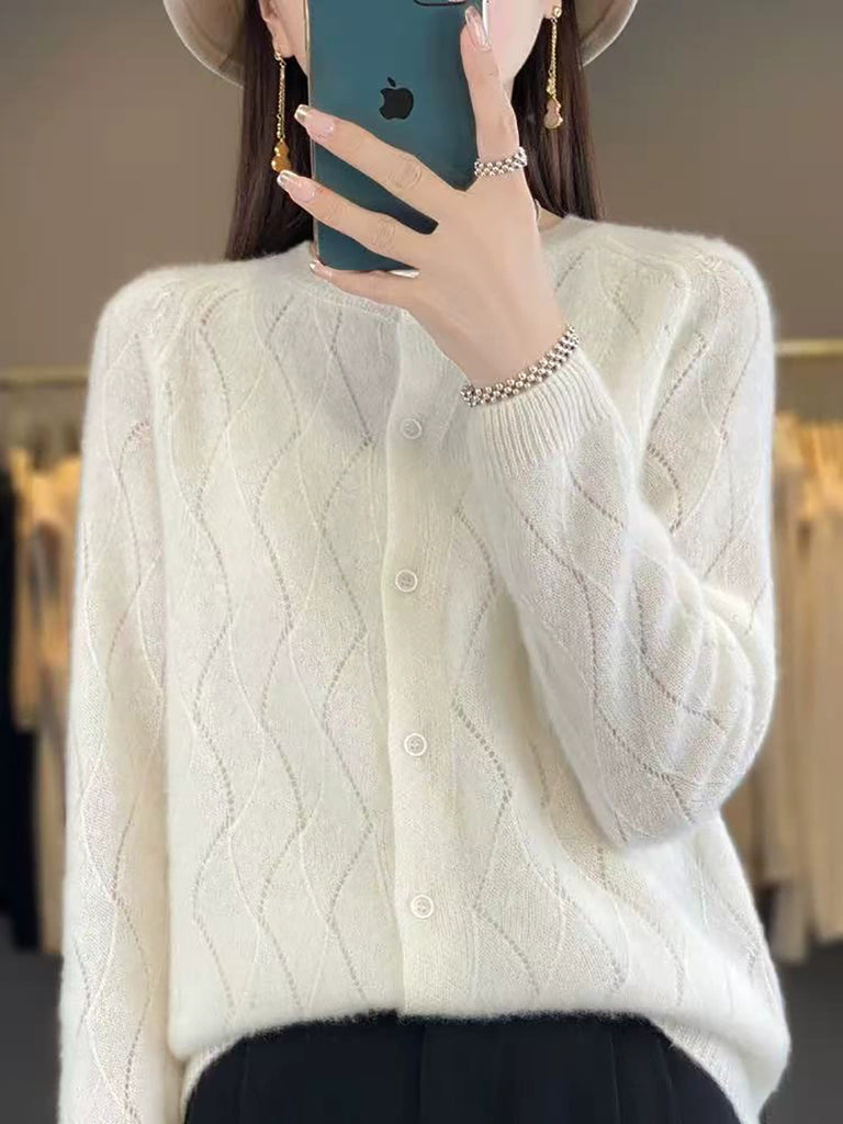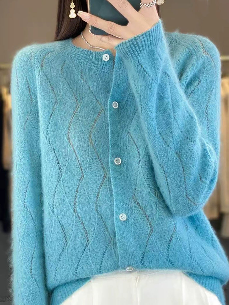 Dames Winter Pure Color Gebreide O-hals Cardigan Trui