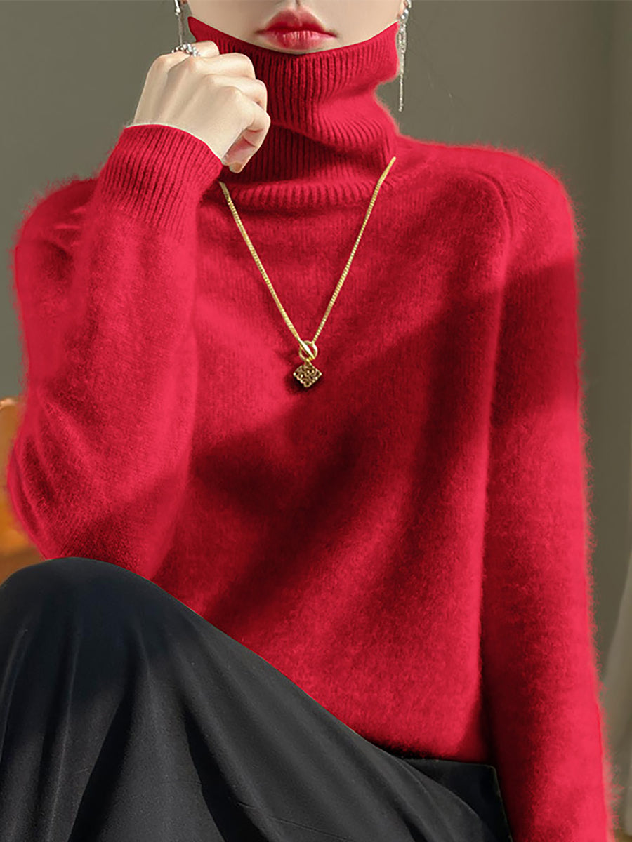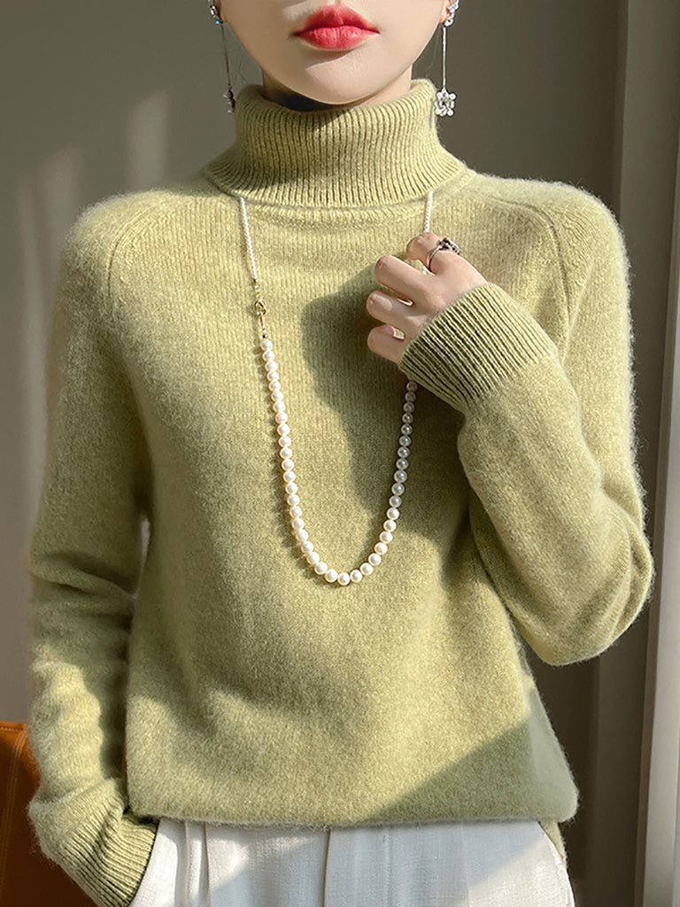 Dames Winter Pure Color Turtleneck Trui van 100% Wol