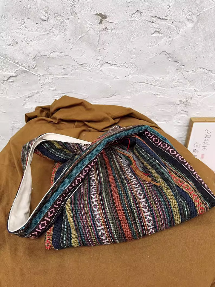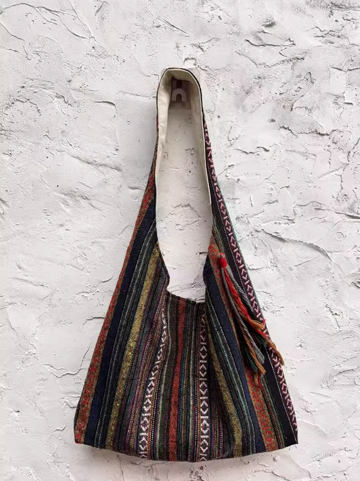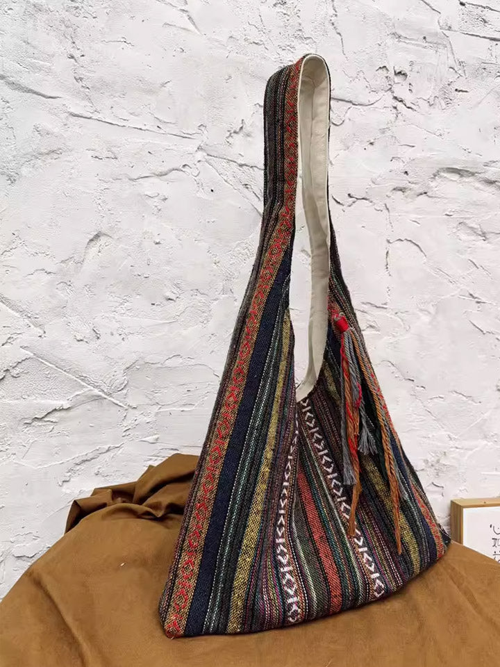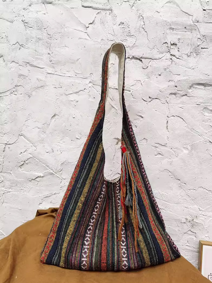 3038 Etnische schoudertas met kleurblokken en strepen