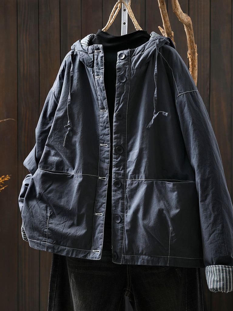 Dames herfst casual pure kleur gewatteerde capuchonjas