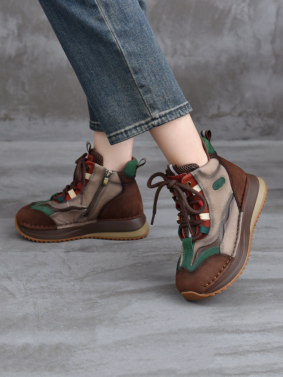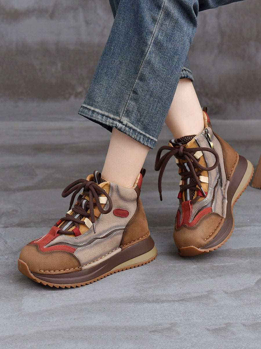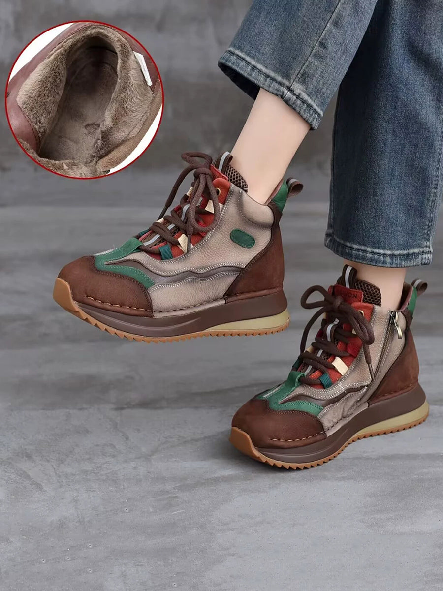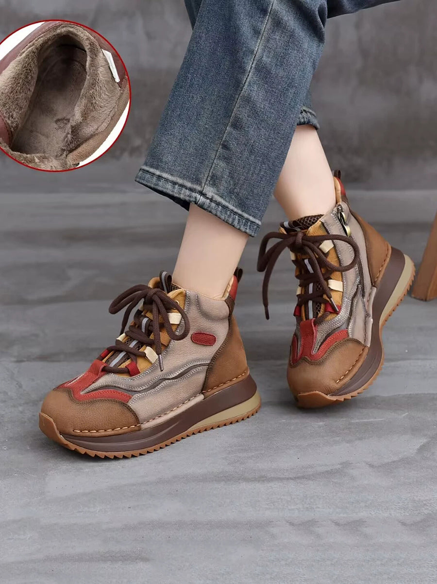 Dames winter enkellaarsjes van echt leer met kleurblokken