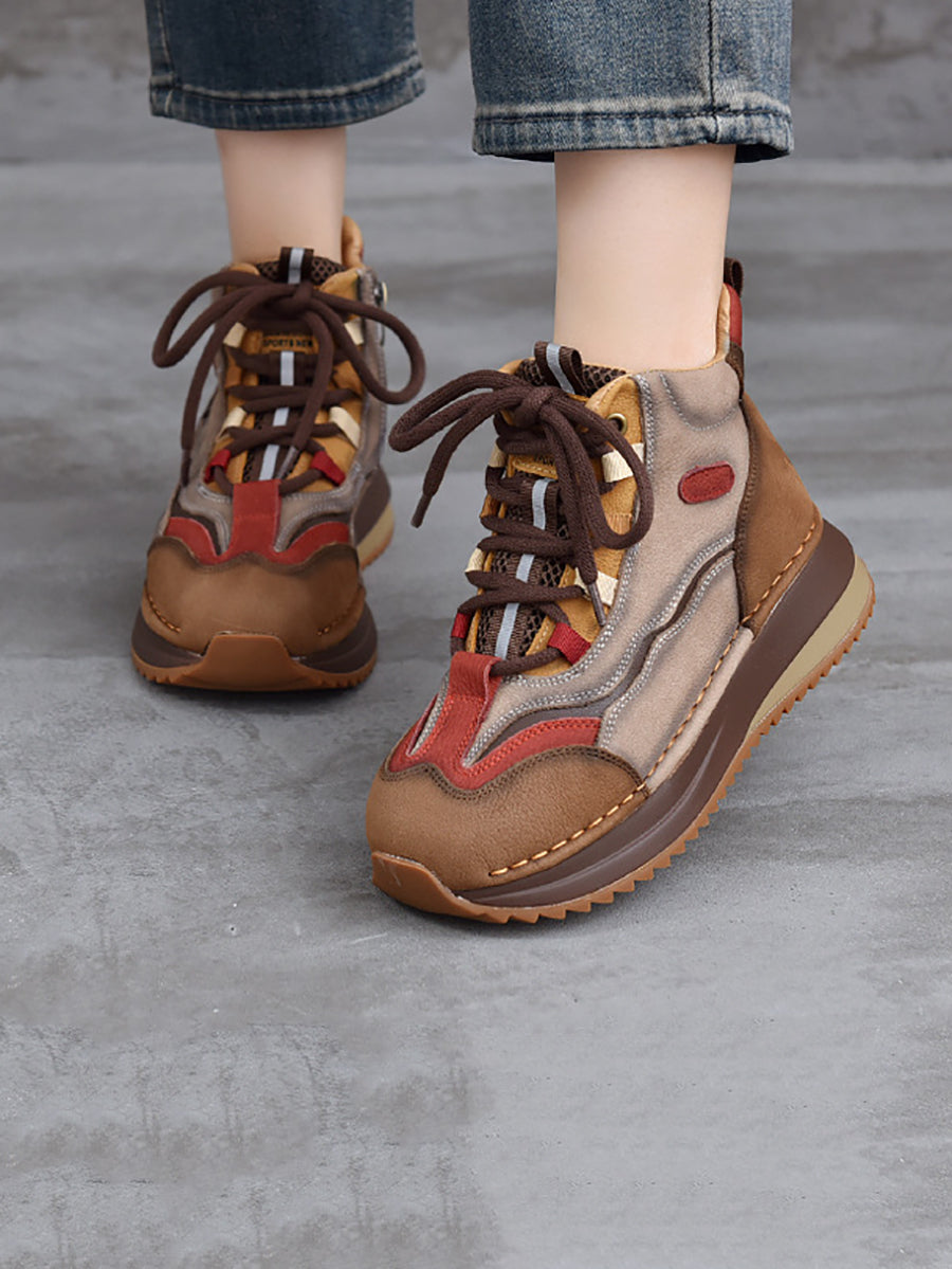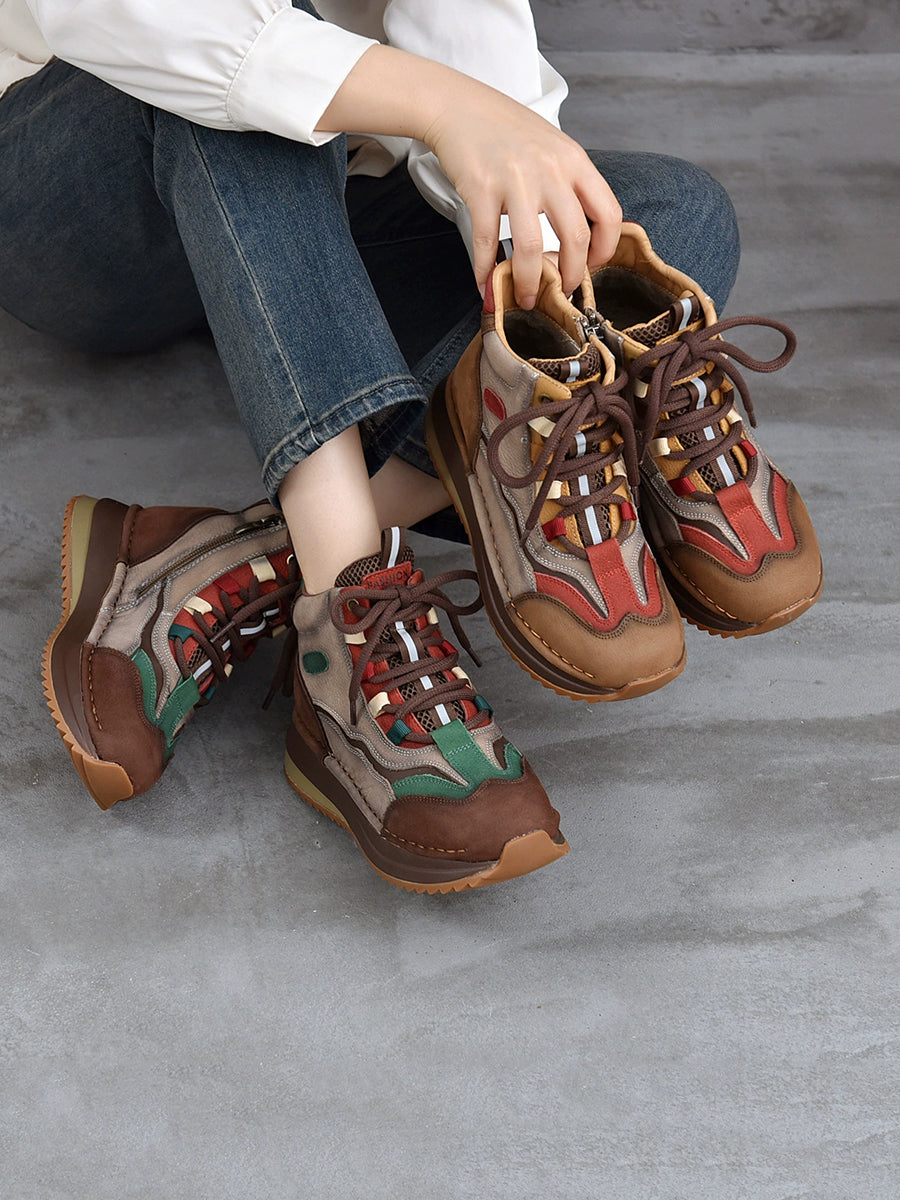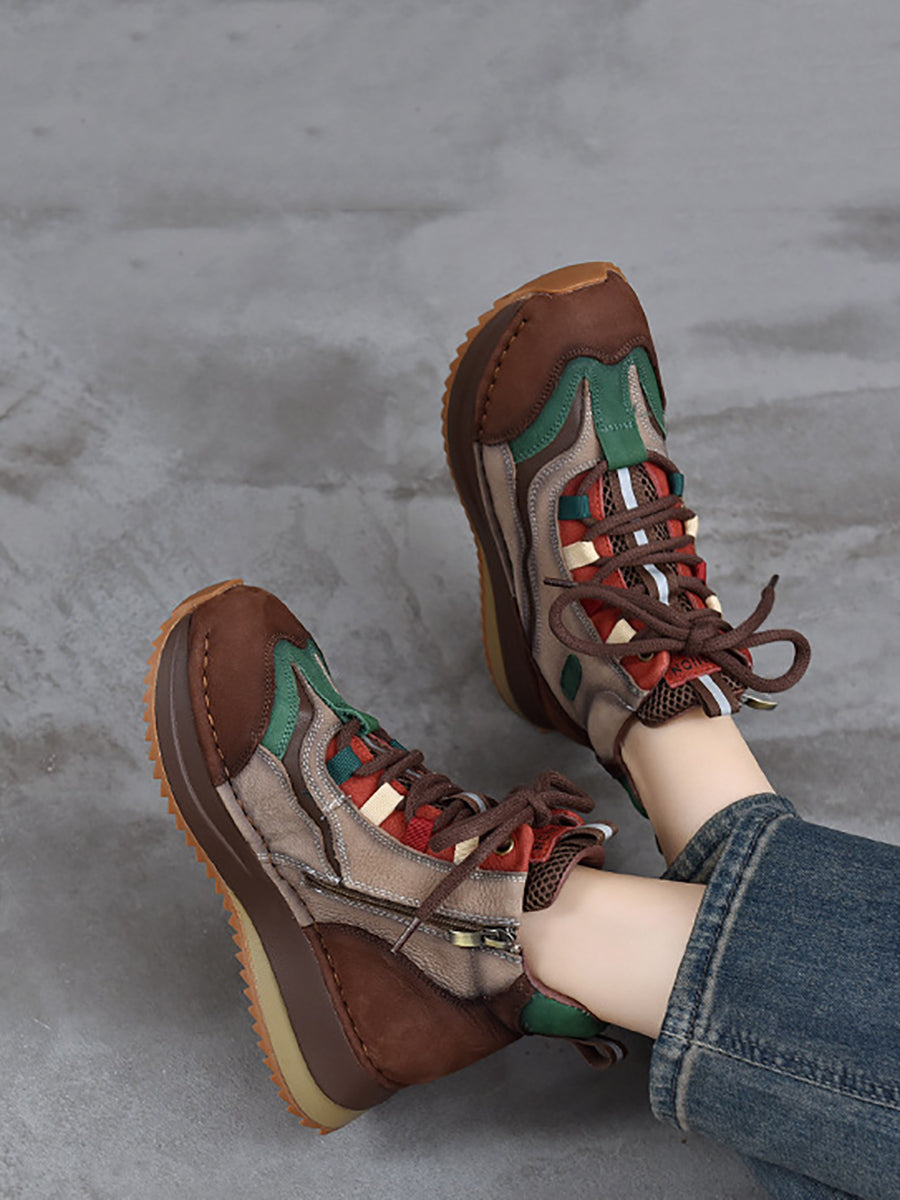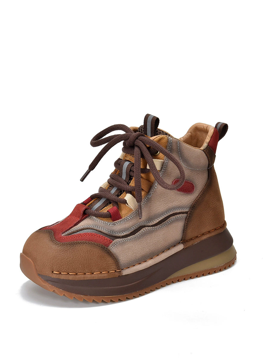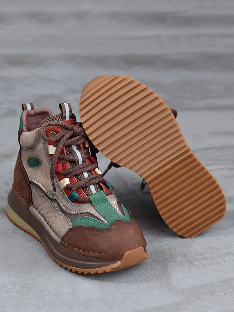 Dames winter enkellaarsjes van echt leer met kleurblokken