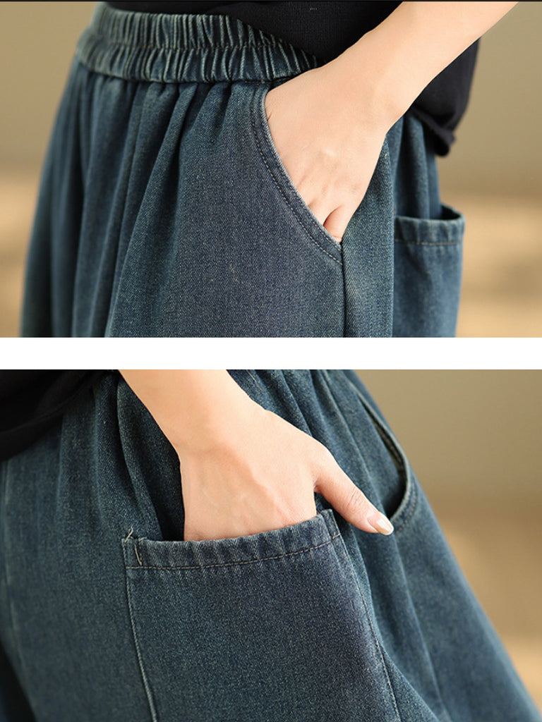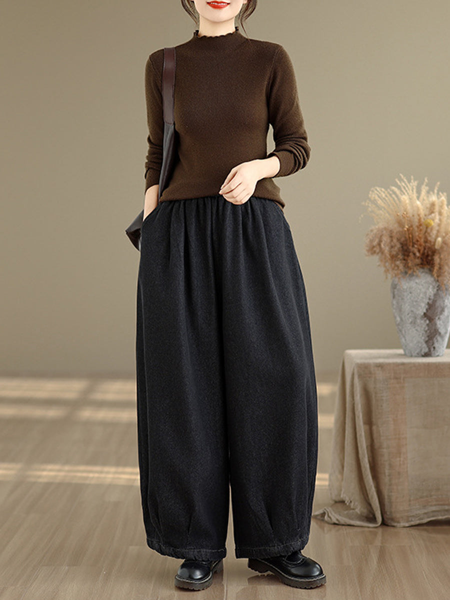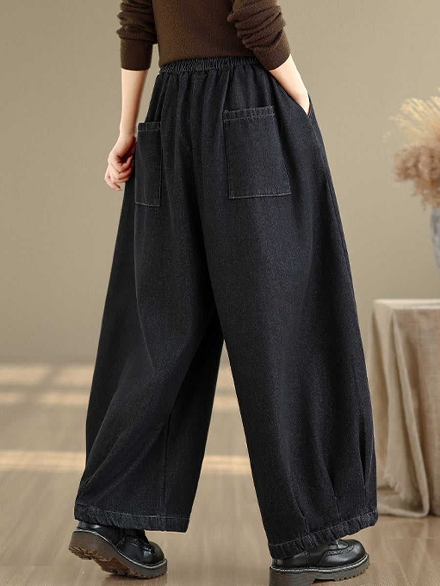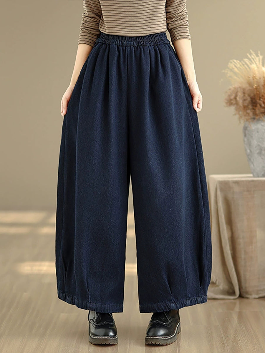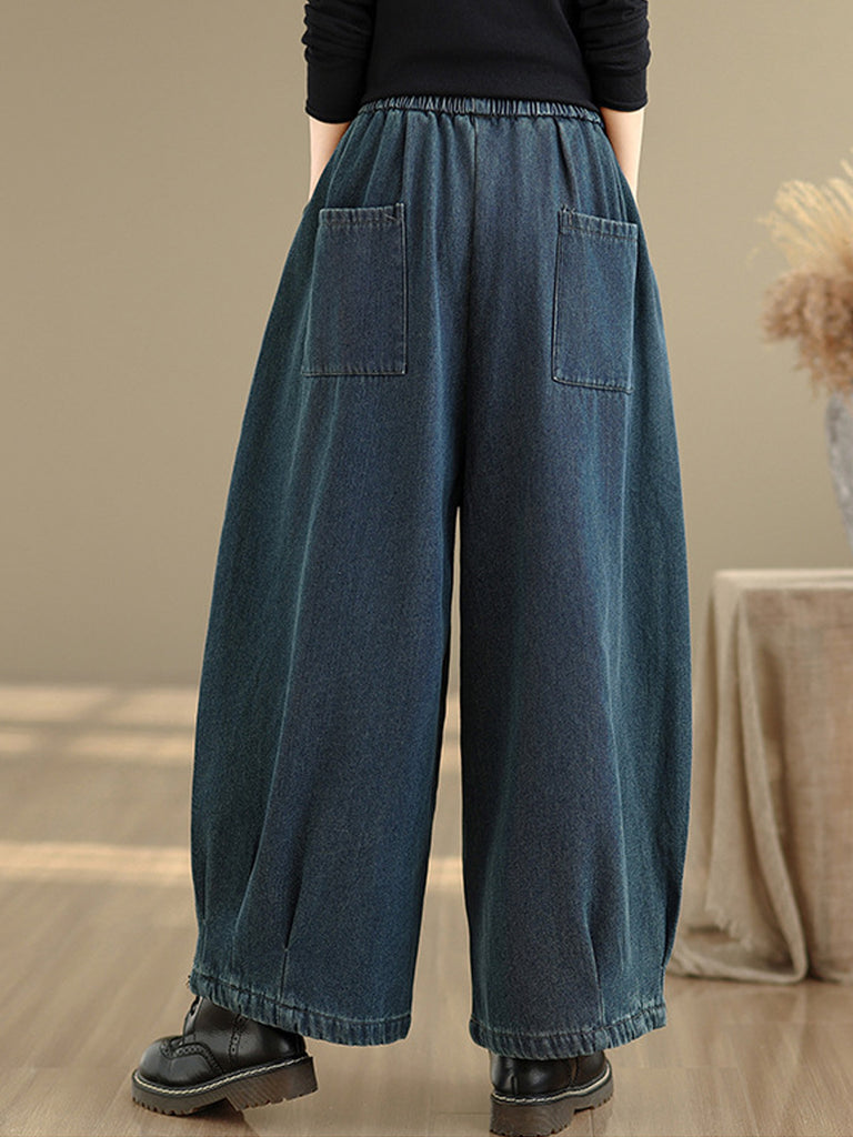 Dame vinter retro denim fleeceforede vide benbukser
