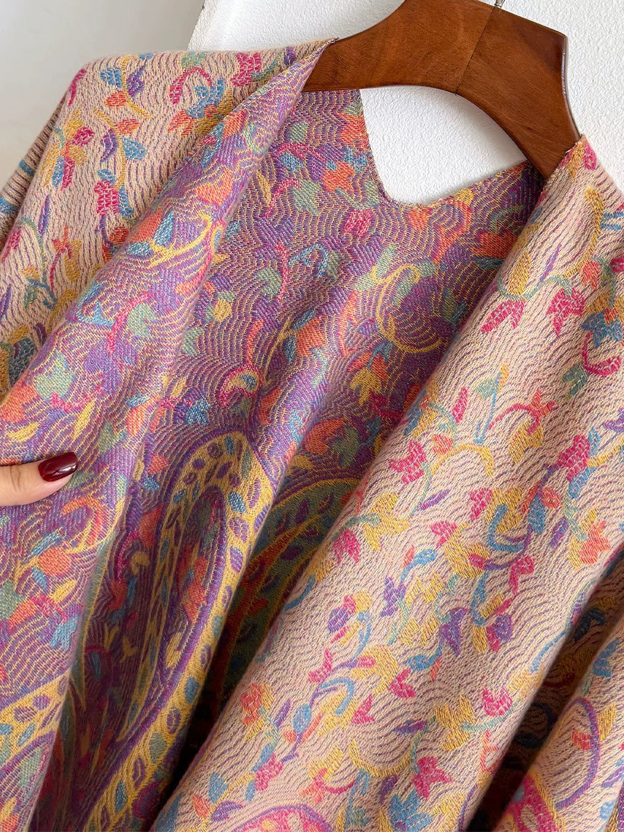 Kvinners vinter etnisk blomsterdusk sjalskjerf