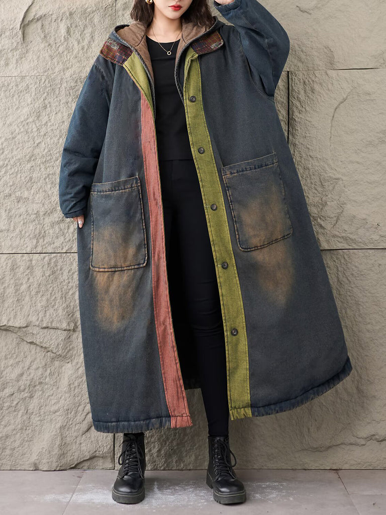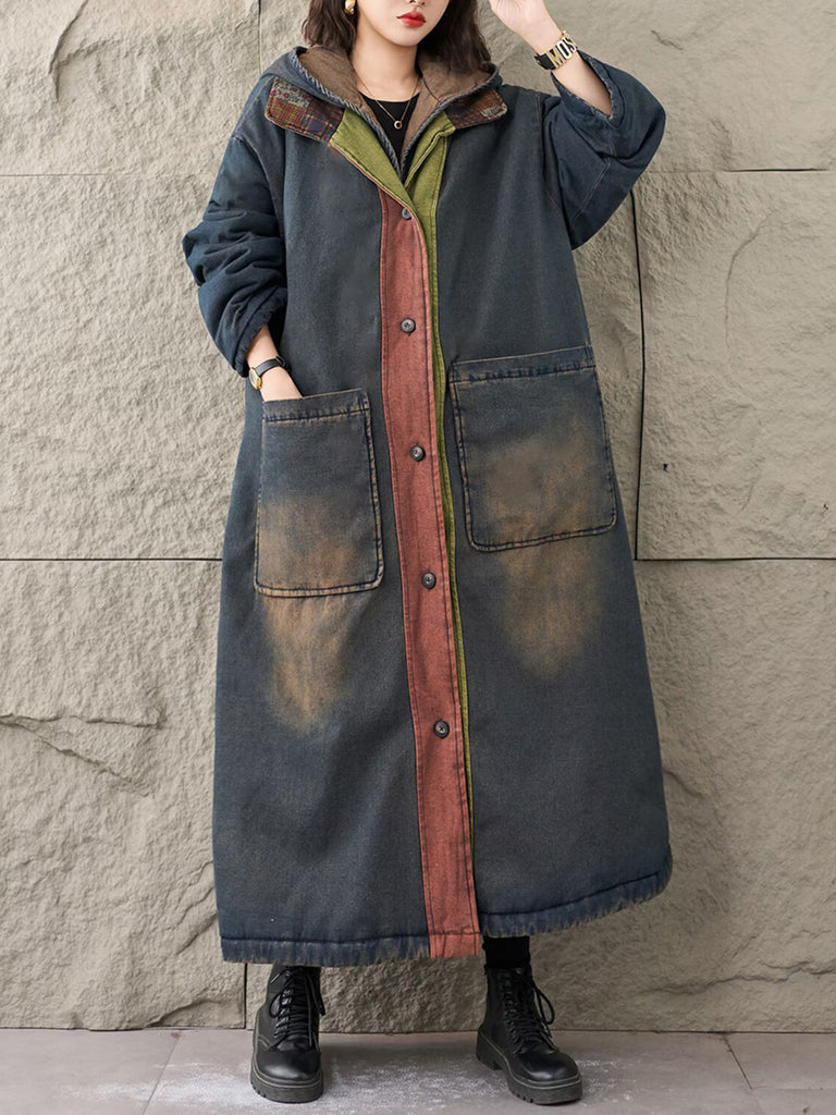 Dame Vintage Spliced Denim Hettegenser Polstret Kåpe
