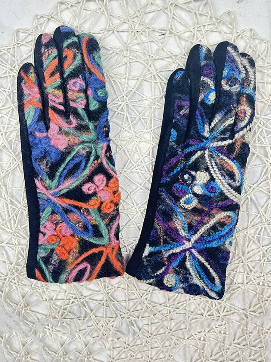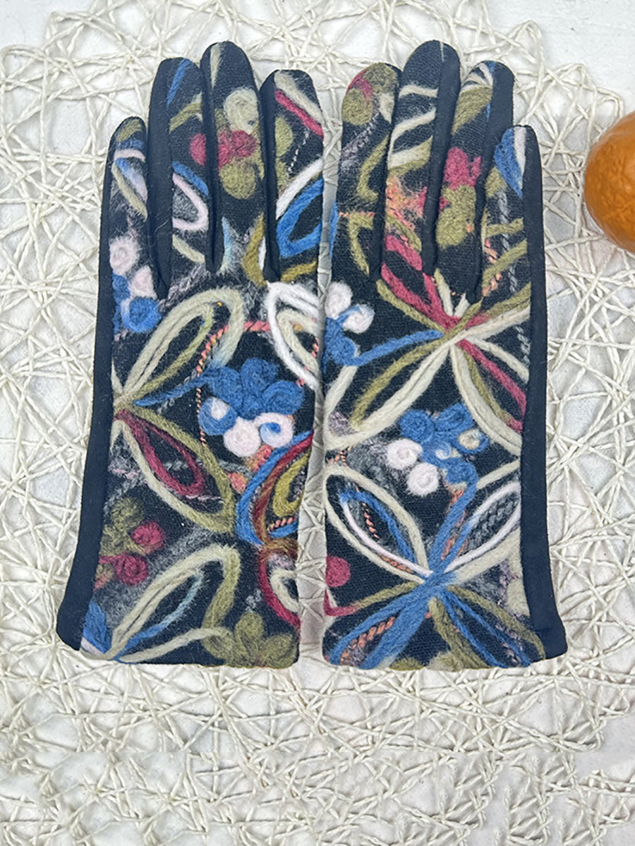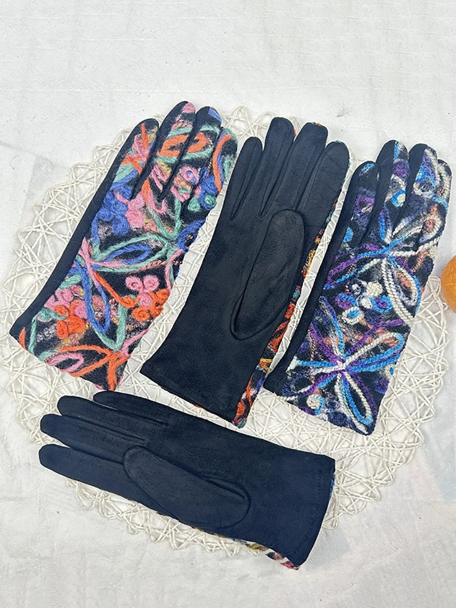 Strikkede varme sykkelhansker til dame med etnisk blomst