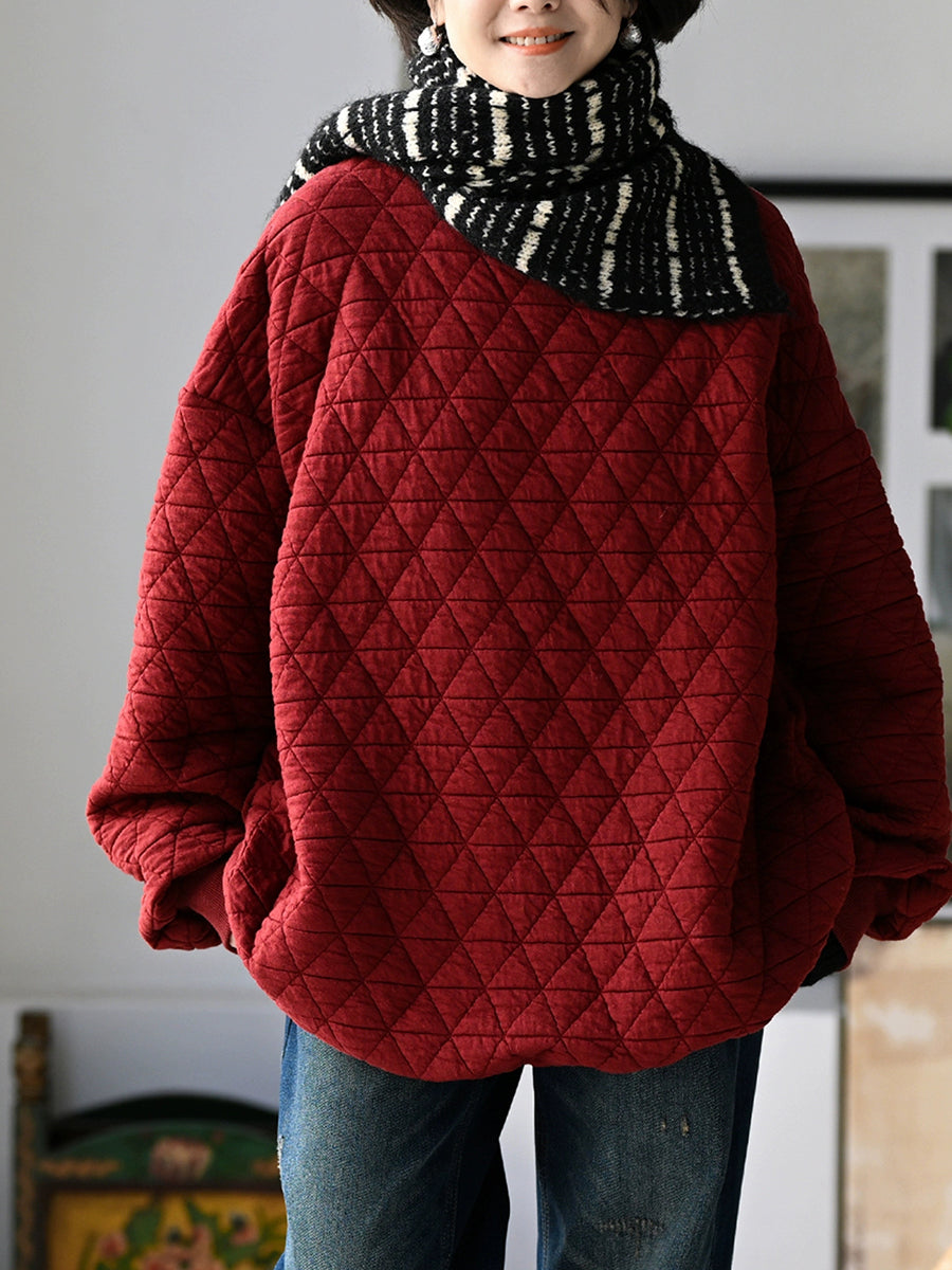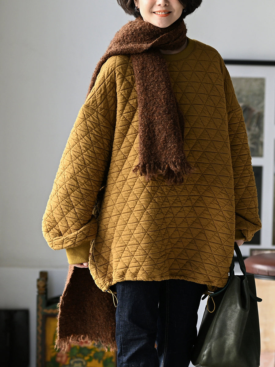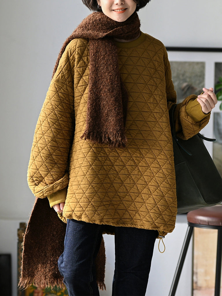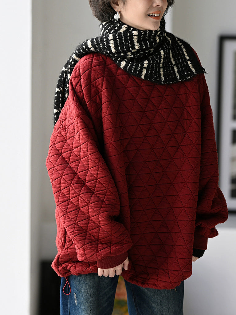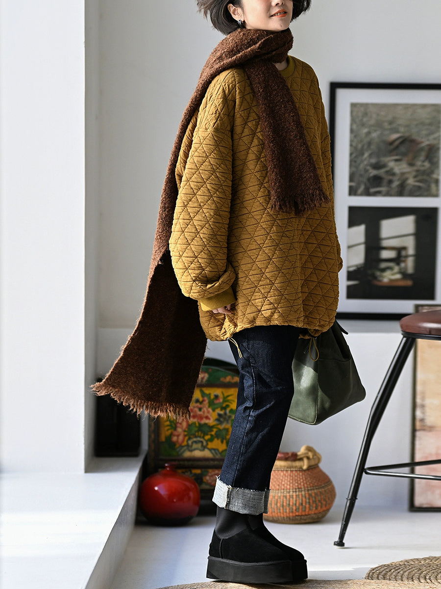 Kunstnerisk vinterjakke med ren farge og O-hals for kvinner
