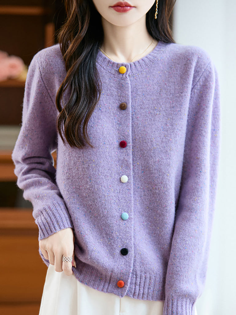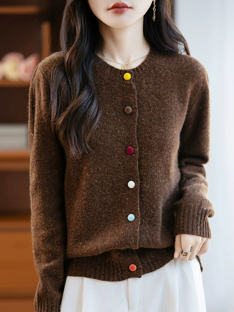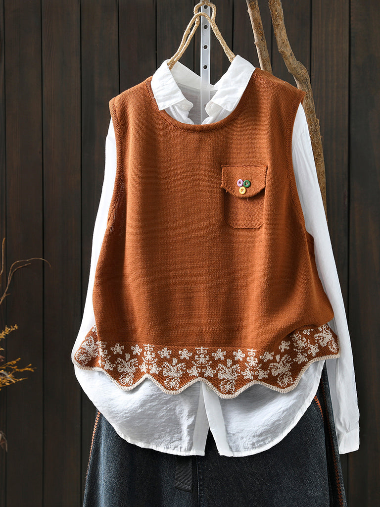 Kunstnerisk strikket vest med bรธlgekant og O-hals for kvinner