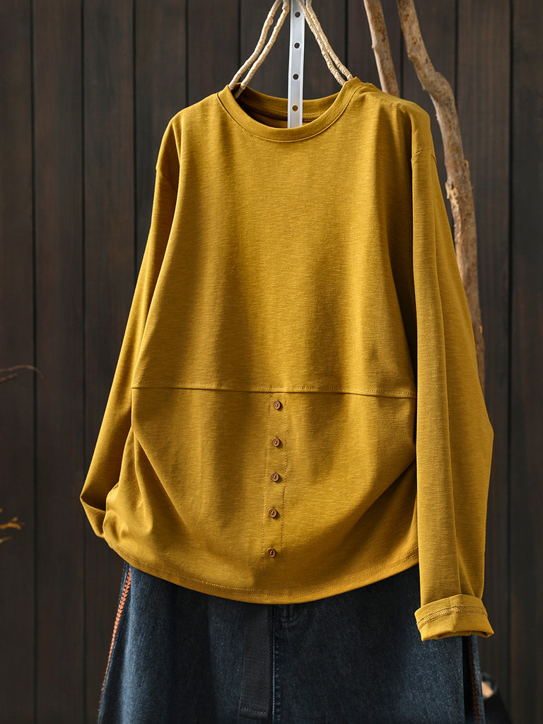 Kunstnerisk hรธstbluse i ren farge i bomull med O-hals for kvinner