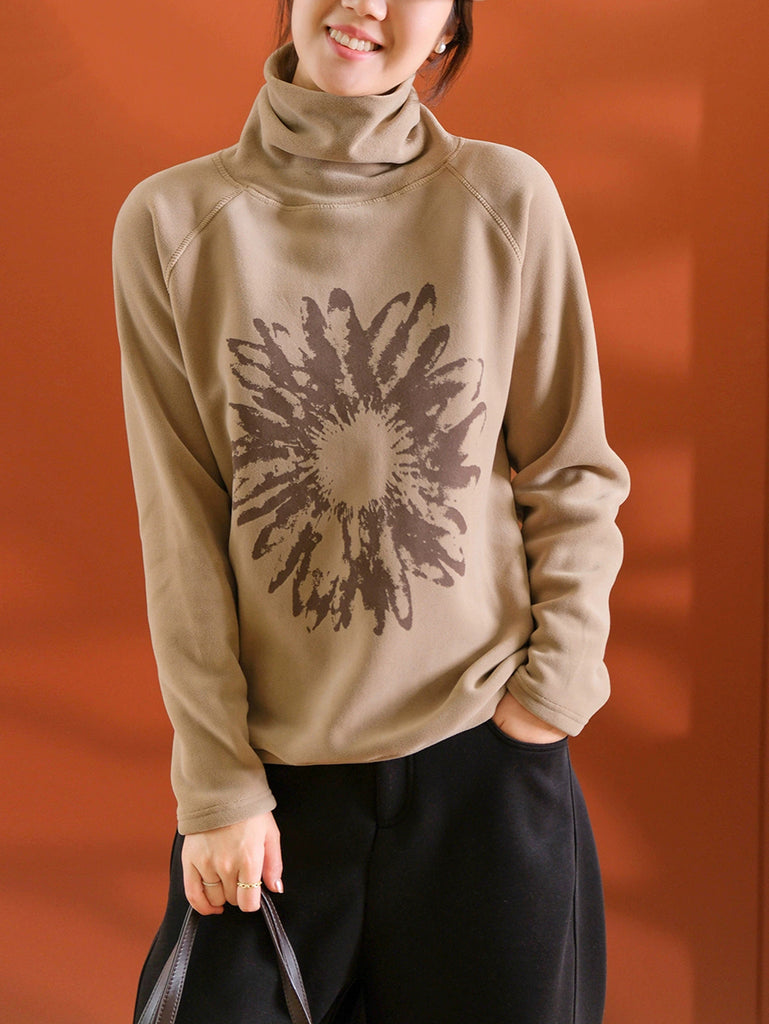 Kunstnerisk hรธstblomster-hรธyhalsbluse til dame