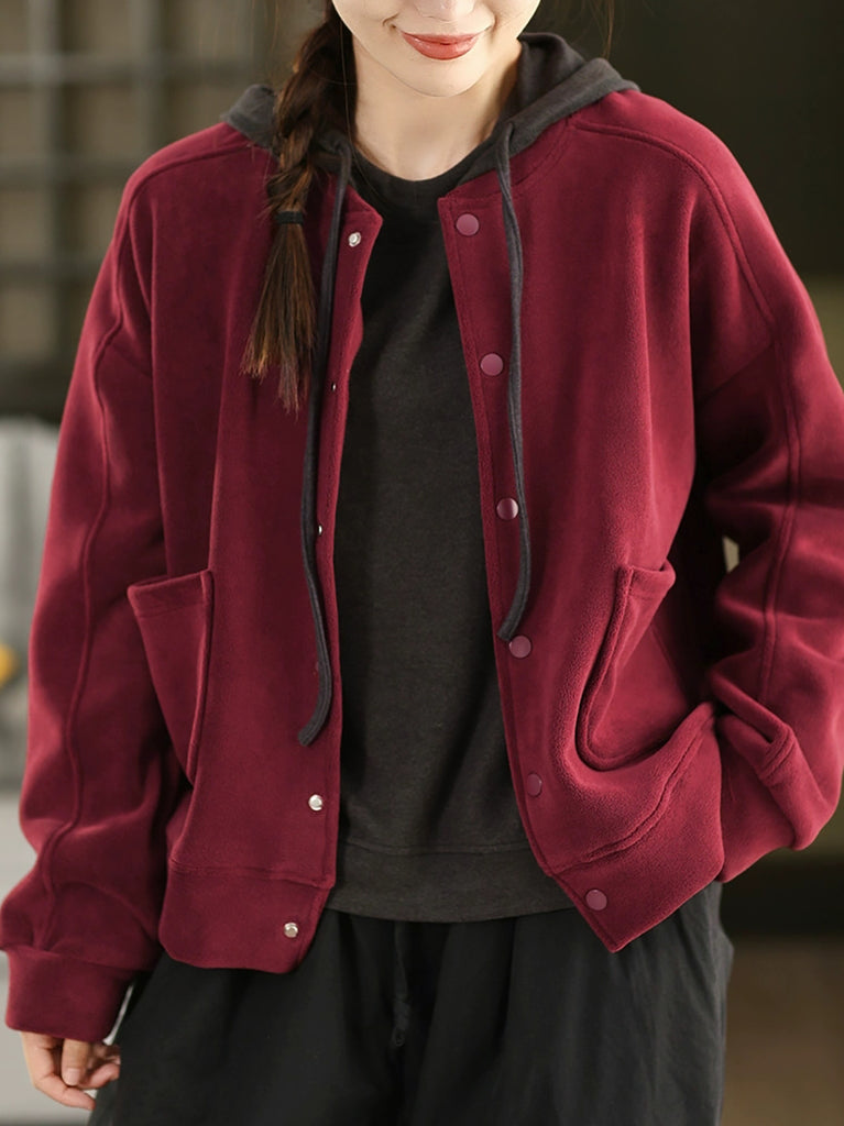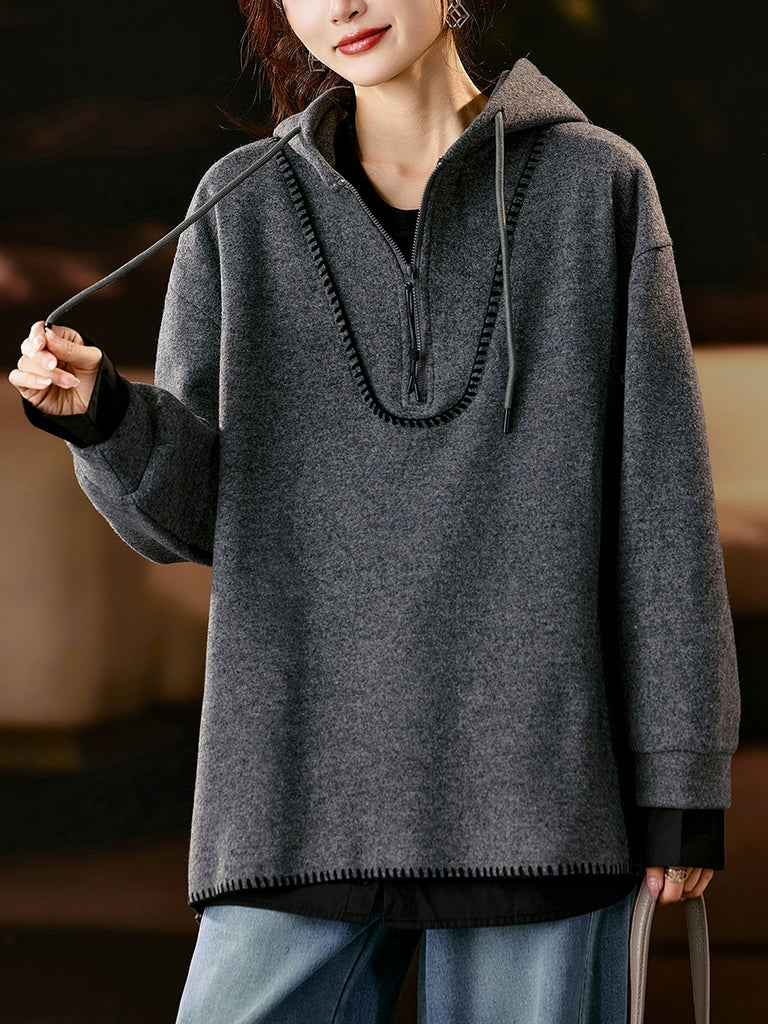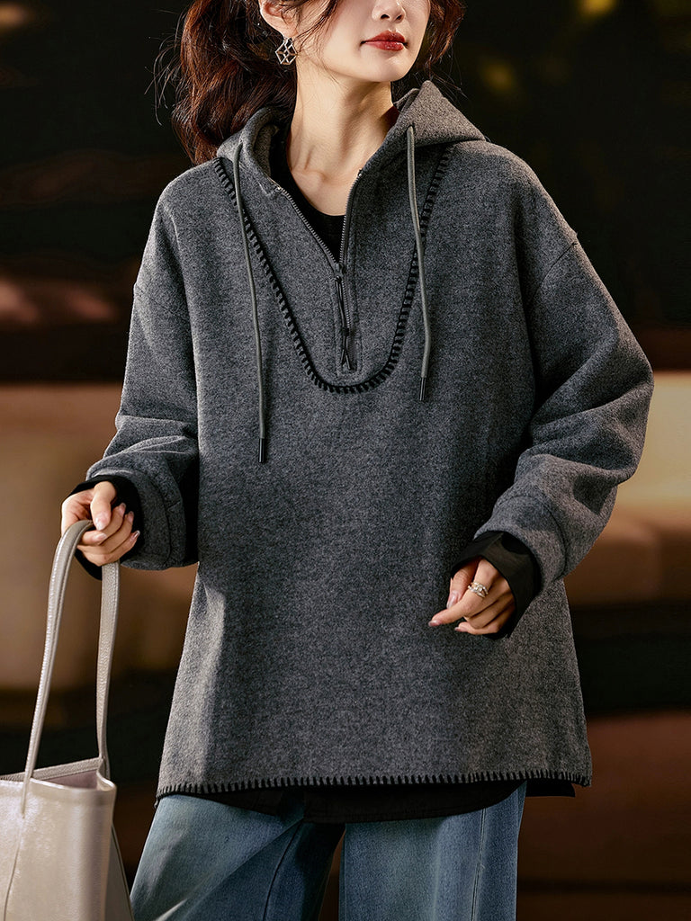 Kunstnerisk hรธsthettegenser i ren farge med fleece