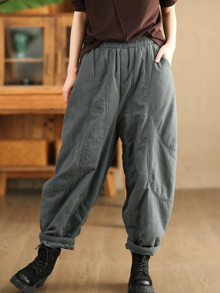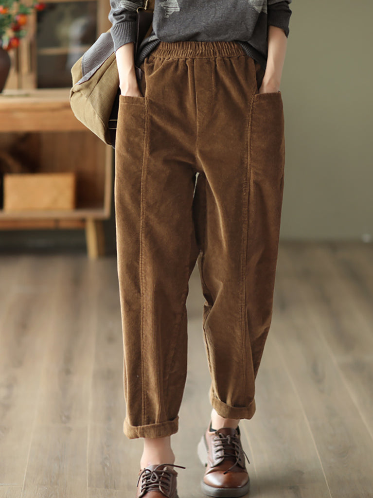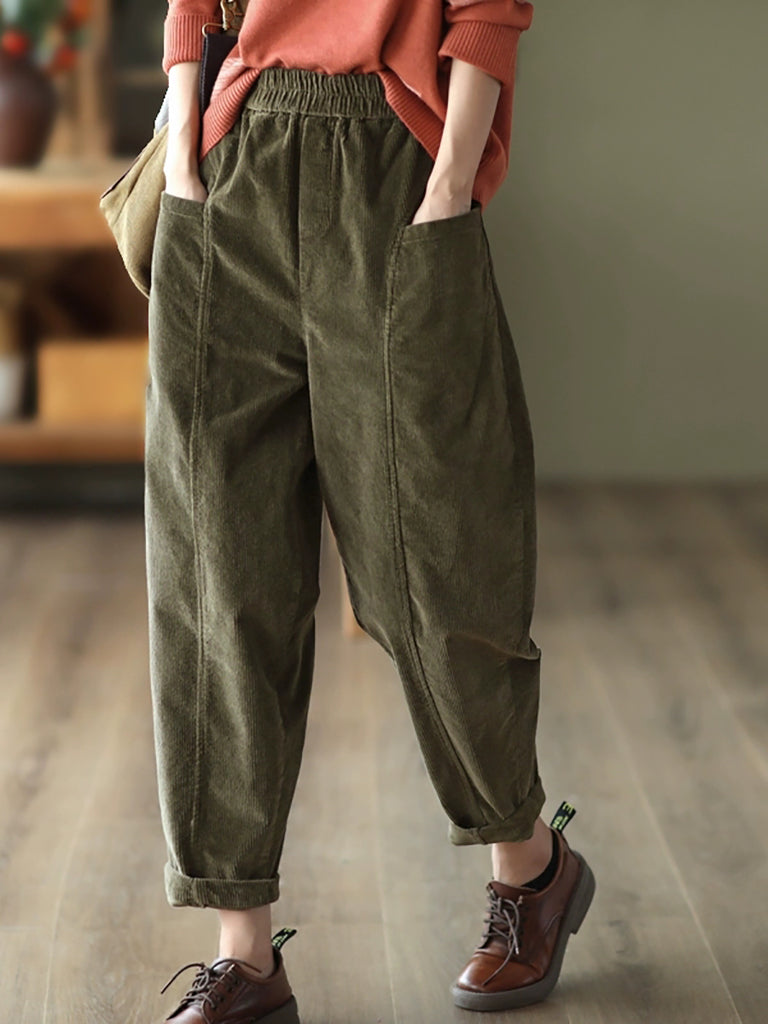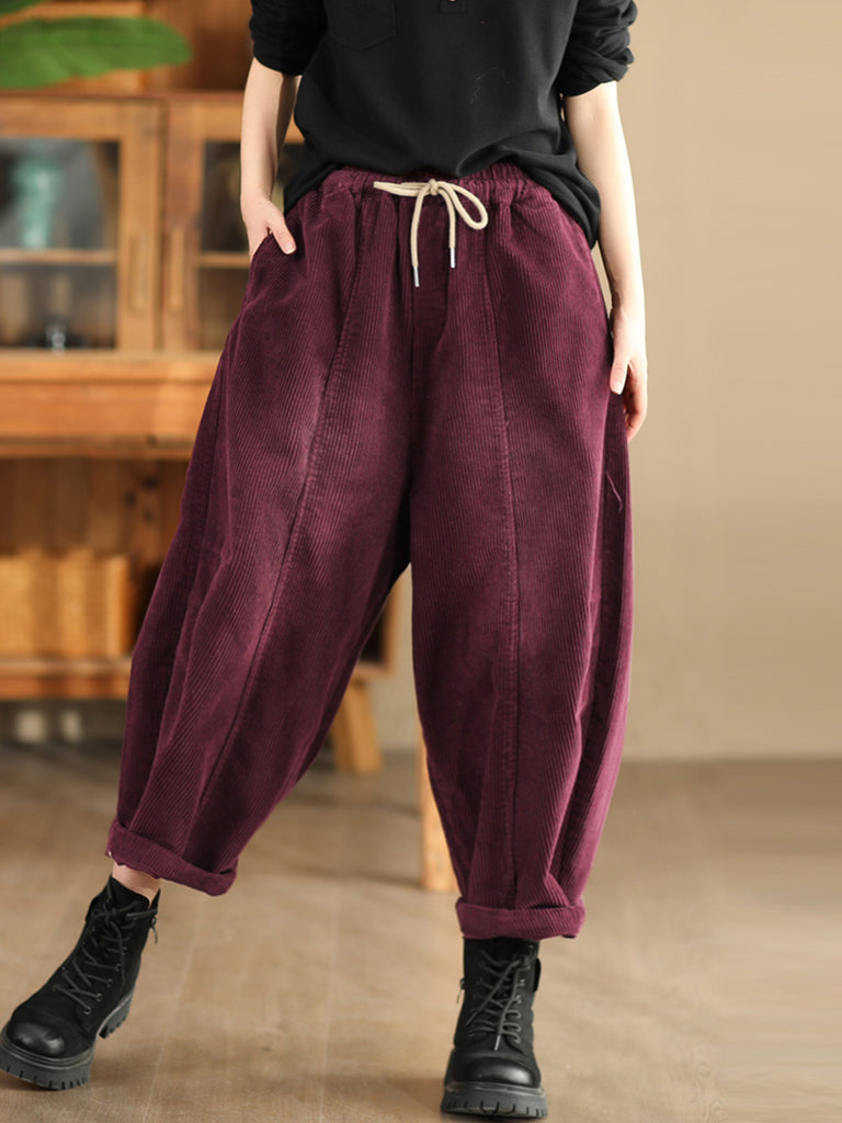 Dame Hรธst Retro Ren Farge Kordflรธyel Harem Bukser