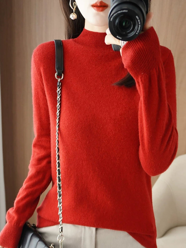 Dame Hรธst Kunstnerisk Ren Farge Halv Hรธyhalset Genser