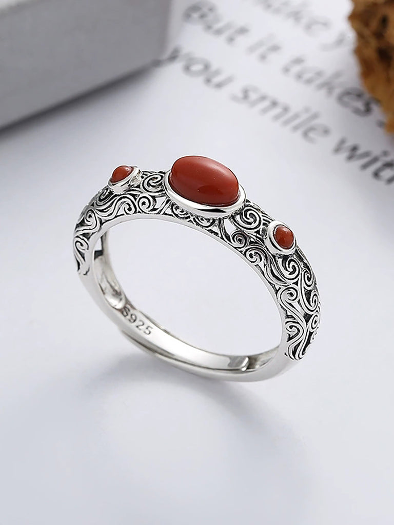 Justerbar ring i rรธd agat i sรธlv fra S925-serien til dame