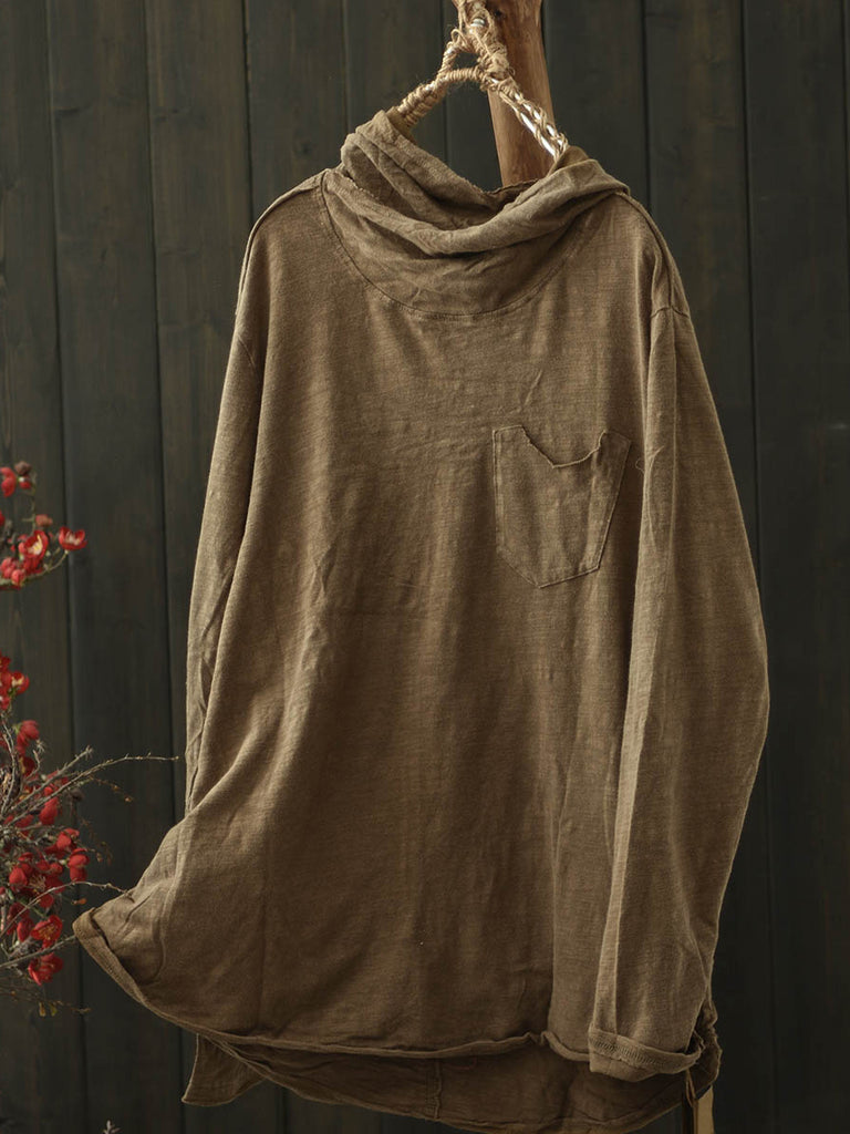 Dame vinter kunstnerisk ren farget bluse med nedfellbar krage