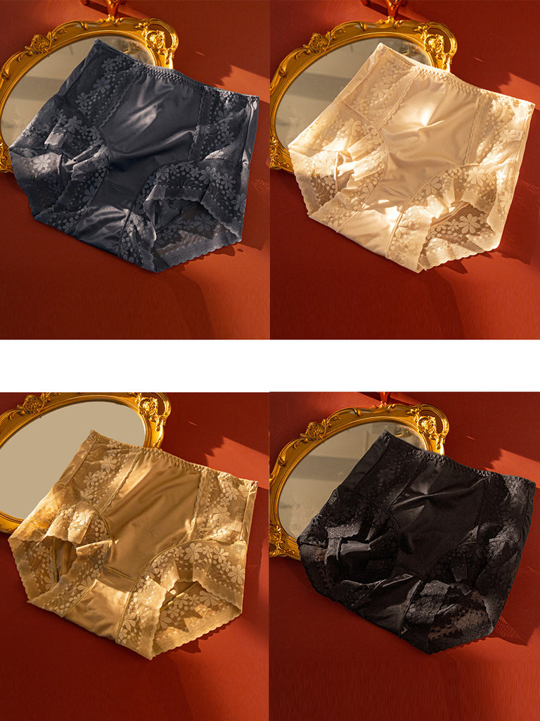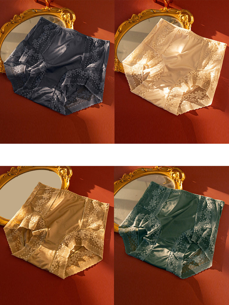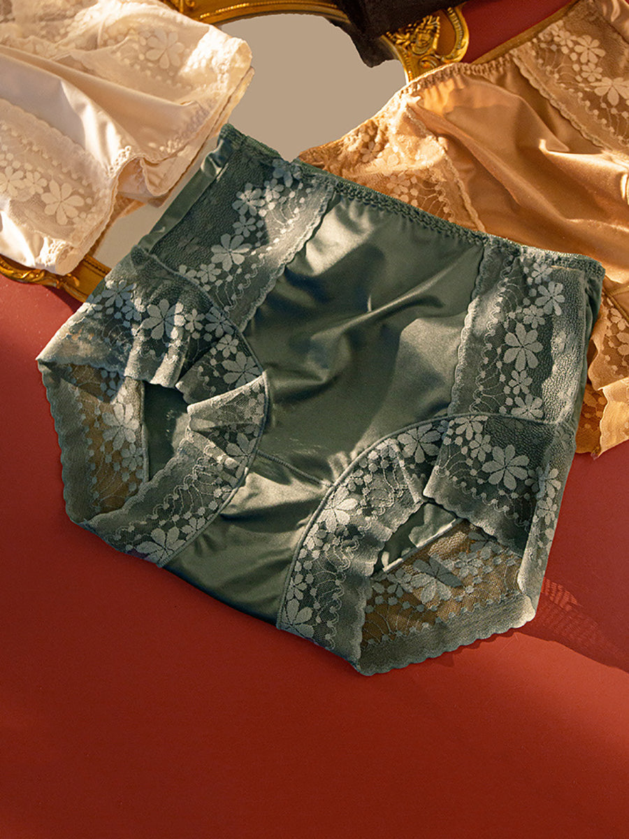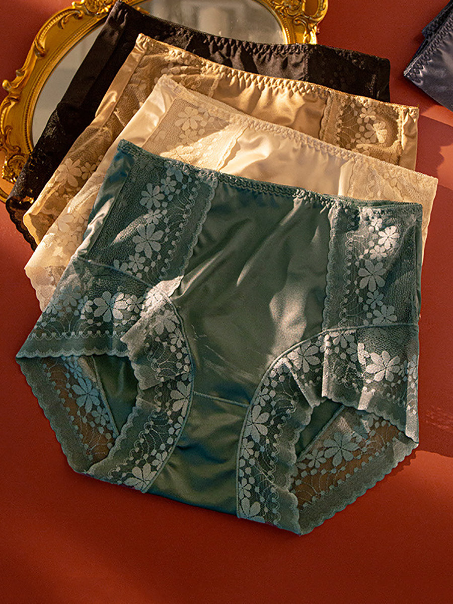 4 stykker kvinner Artsy Flower Lace Høy midje undertøy