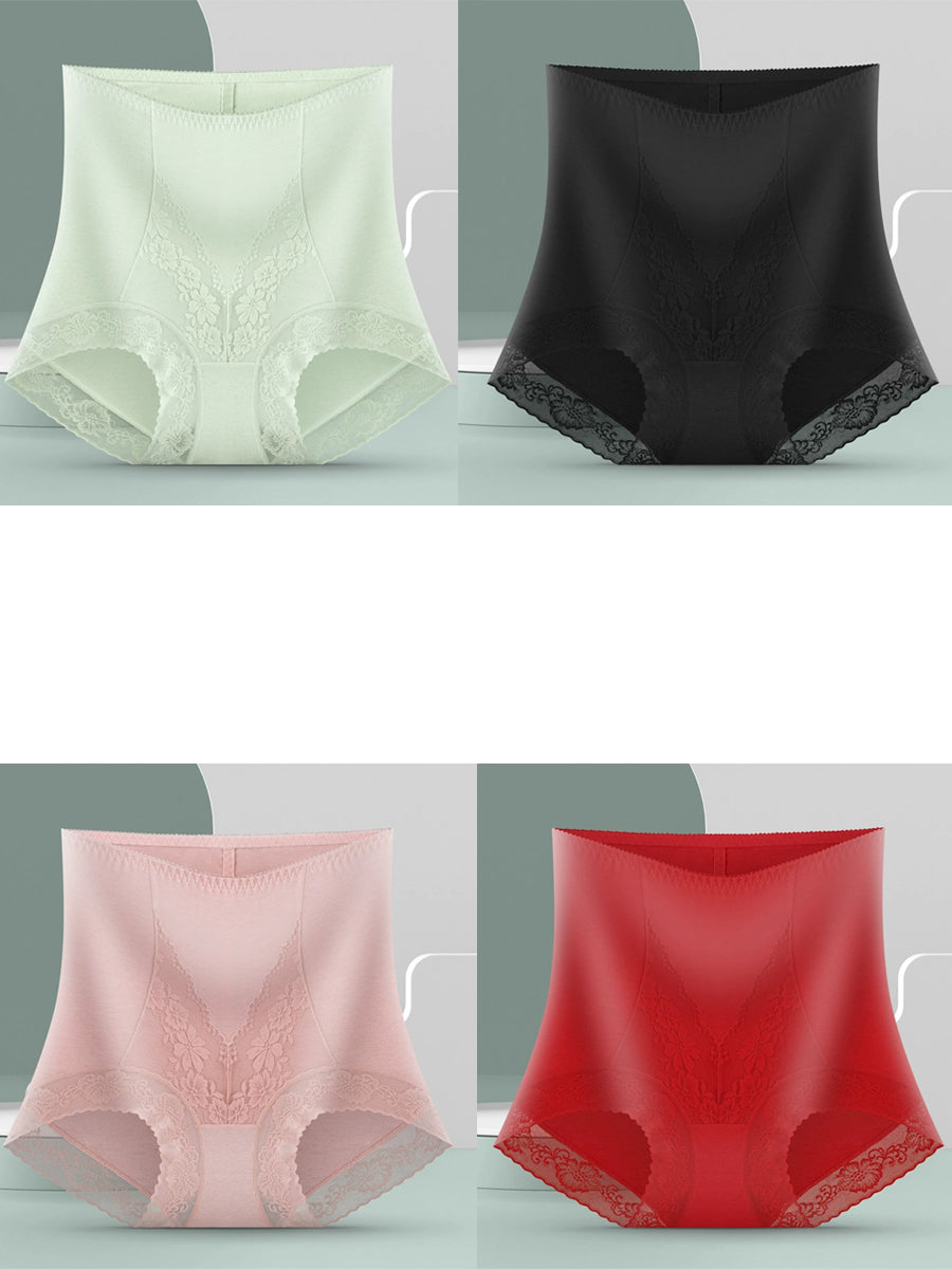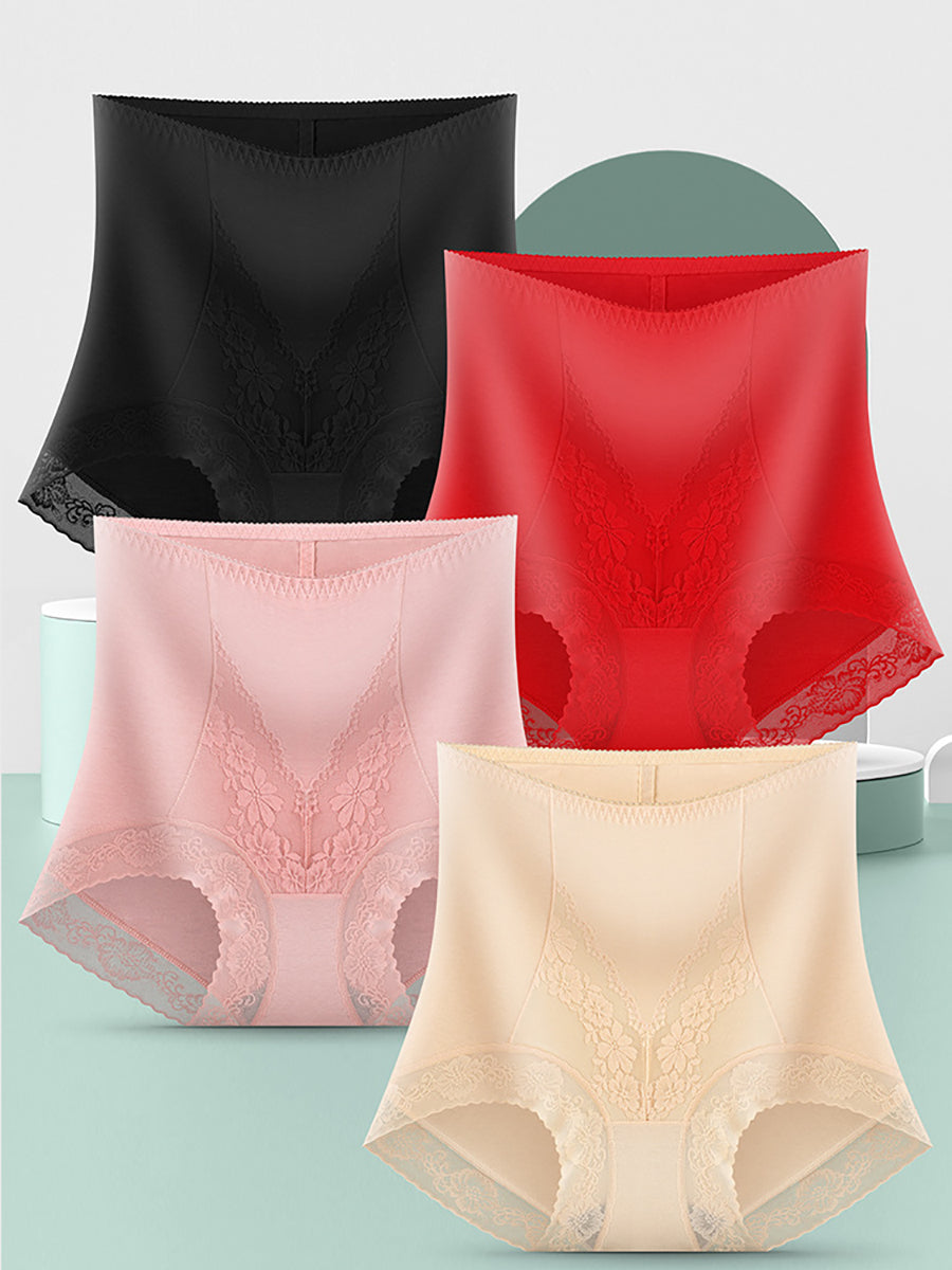 4 deler kunstnerisk blondeundertøy med høy midje for kvinner