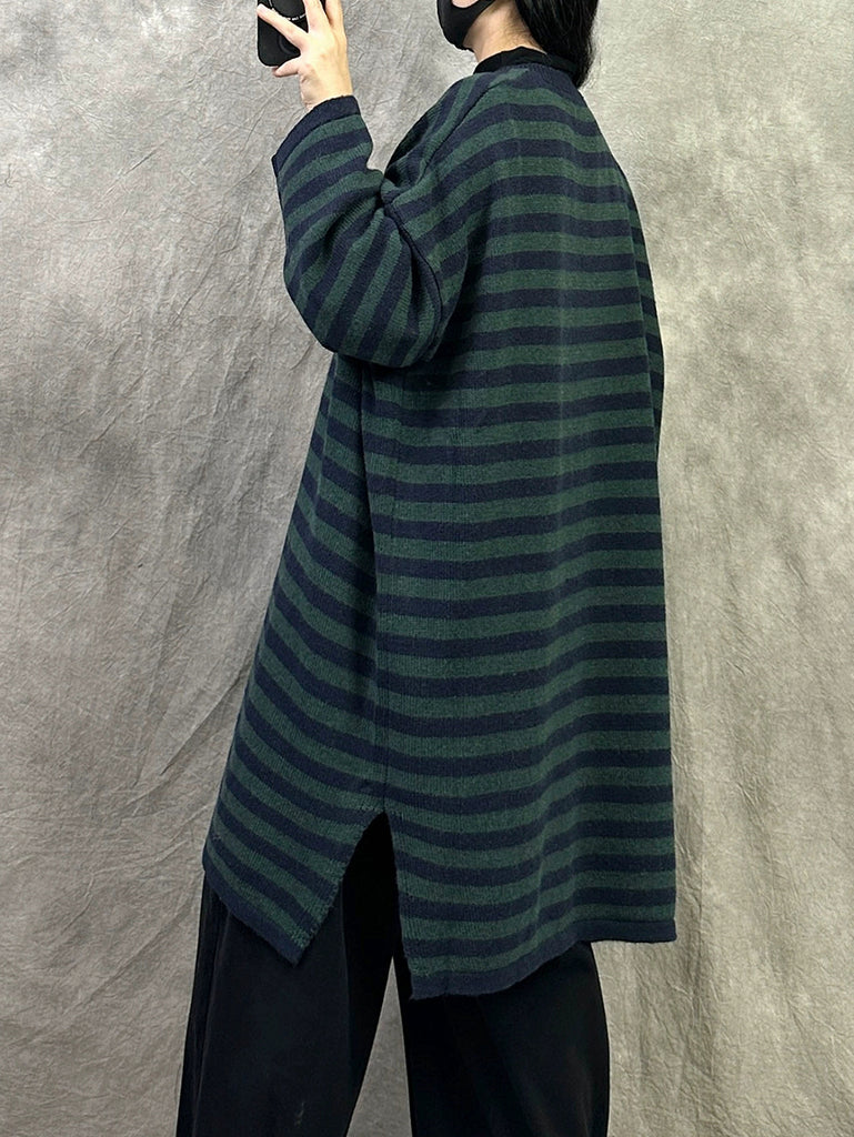 Dame Høst Casual Stripe Bomull Lang Bluse
