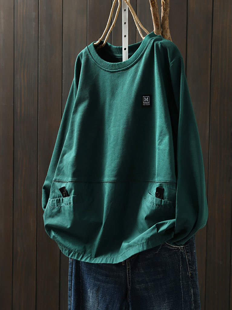 Damehøstskjorte i ren farge med skjøting og O-hals i 100 % bomull