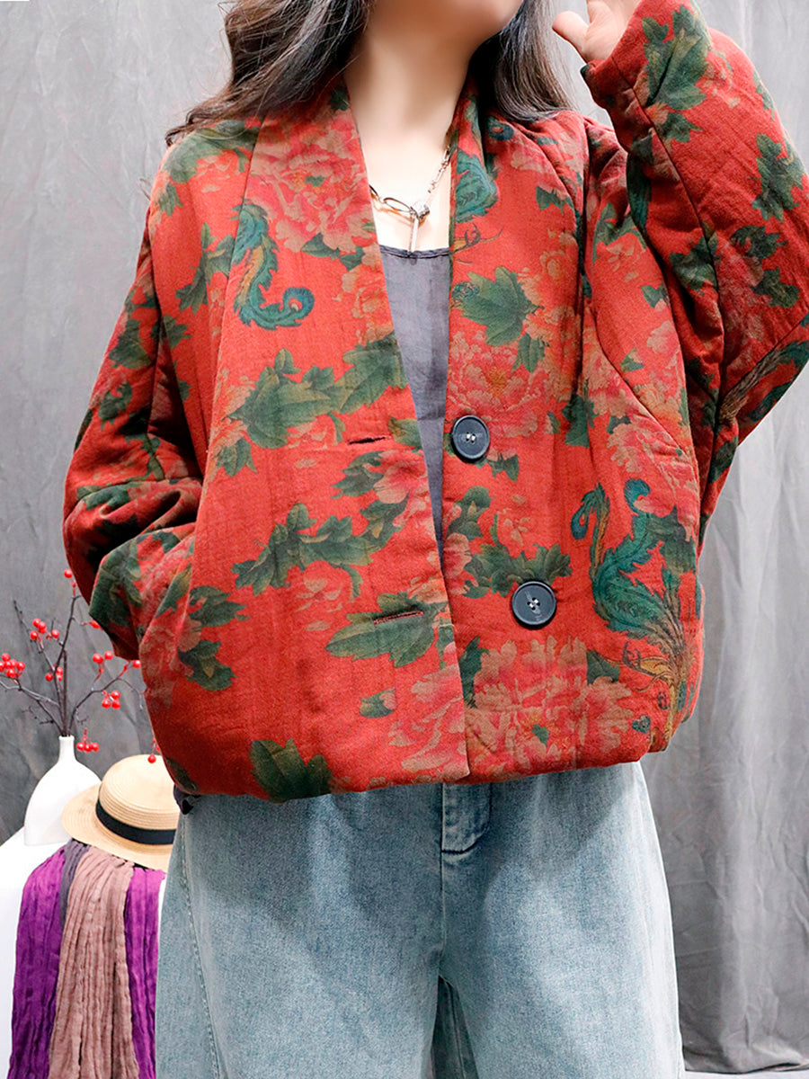 Damer Retro Blomster 100% Bomull V-hals Polstret Kåpe