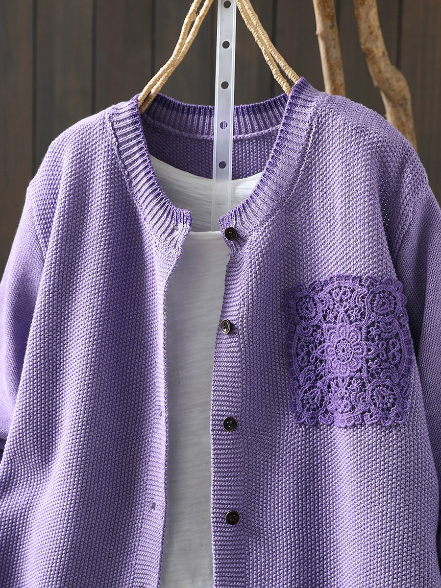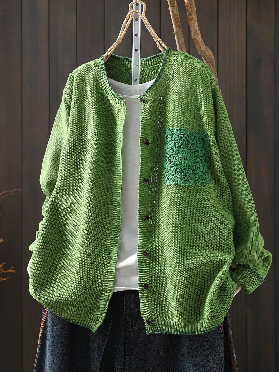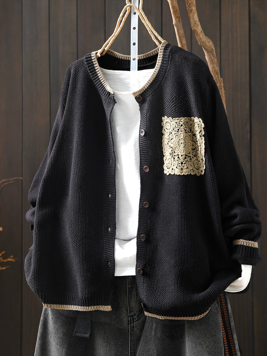 Dame vårlig kunstnerisk bomullscardigan med blondelapper