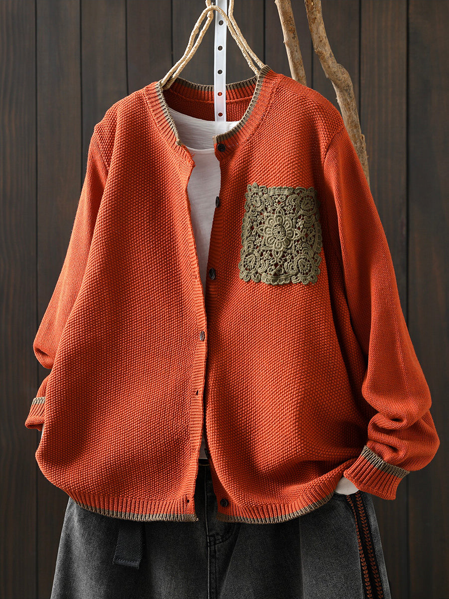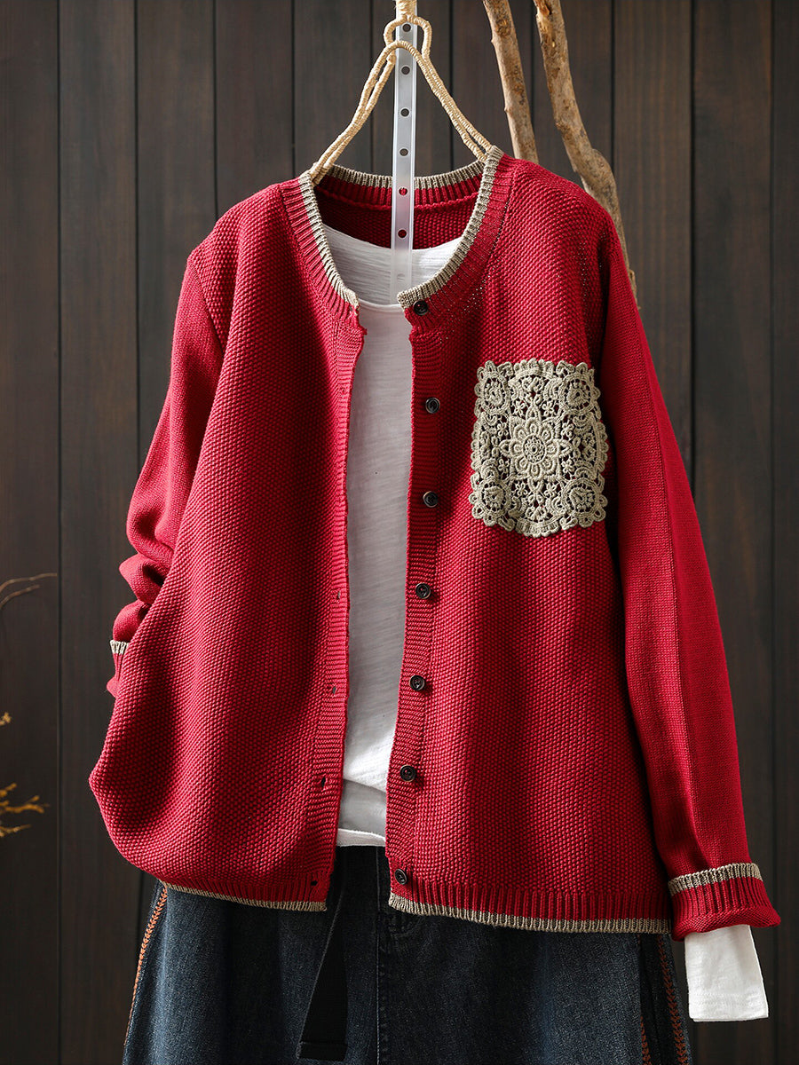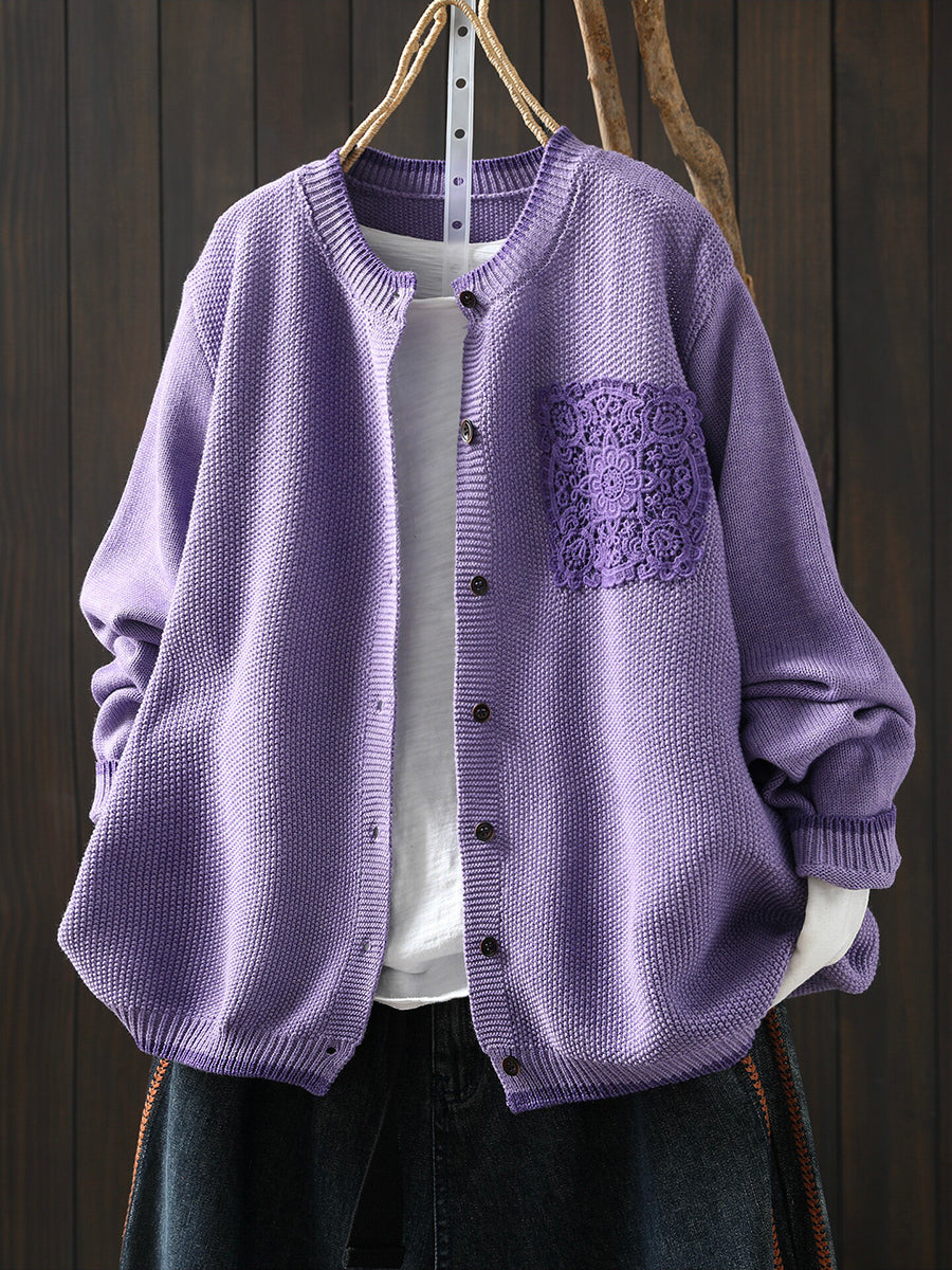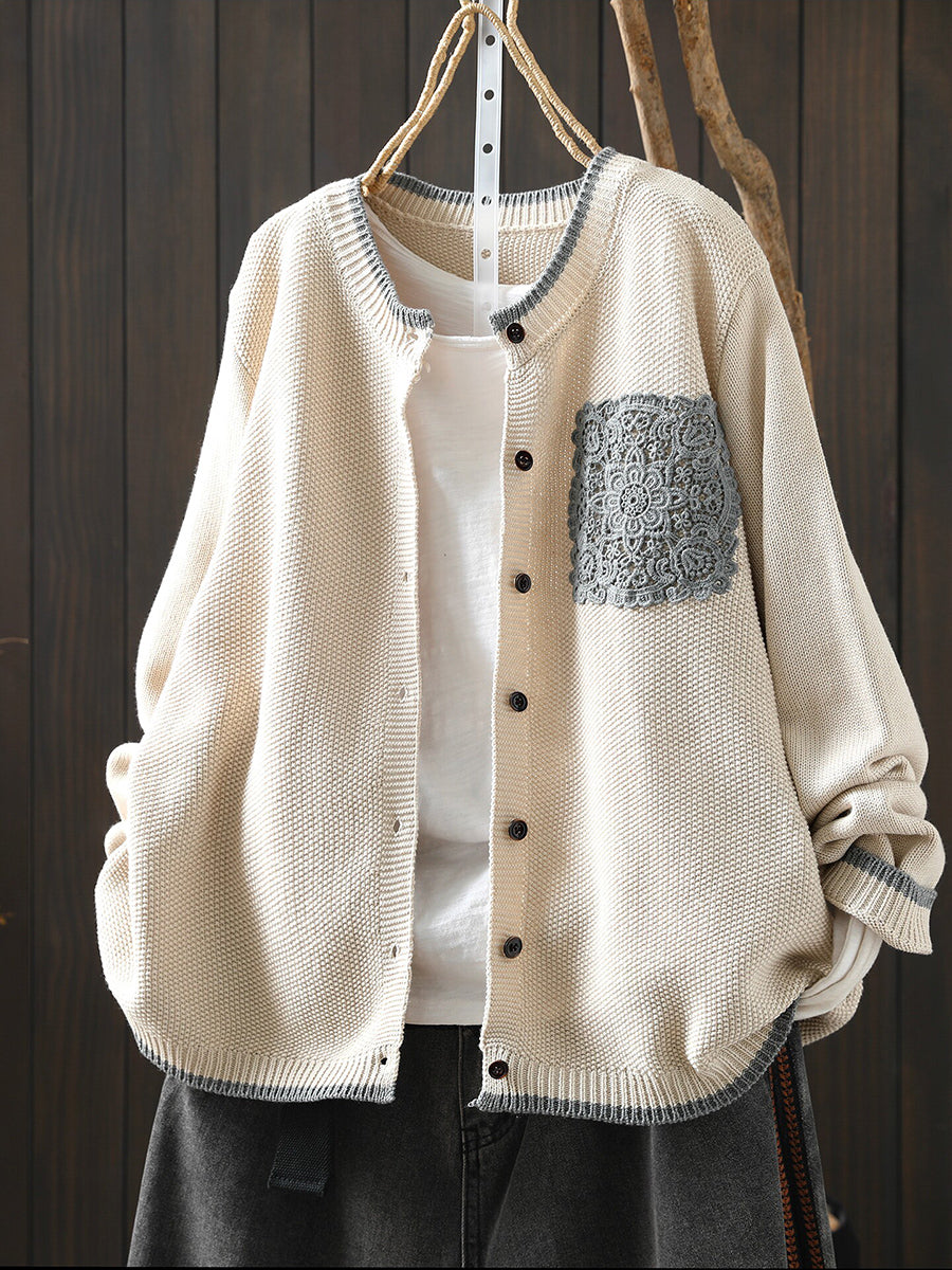 Dame vårlig kunstnerisk bomullscardigan med blondelapper