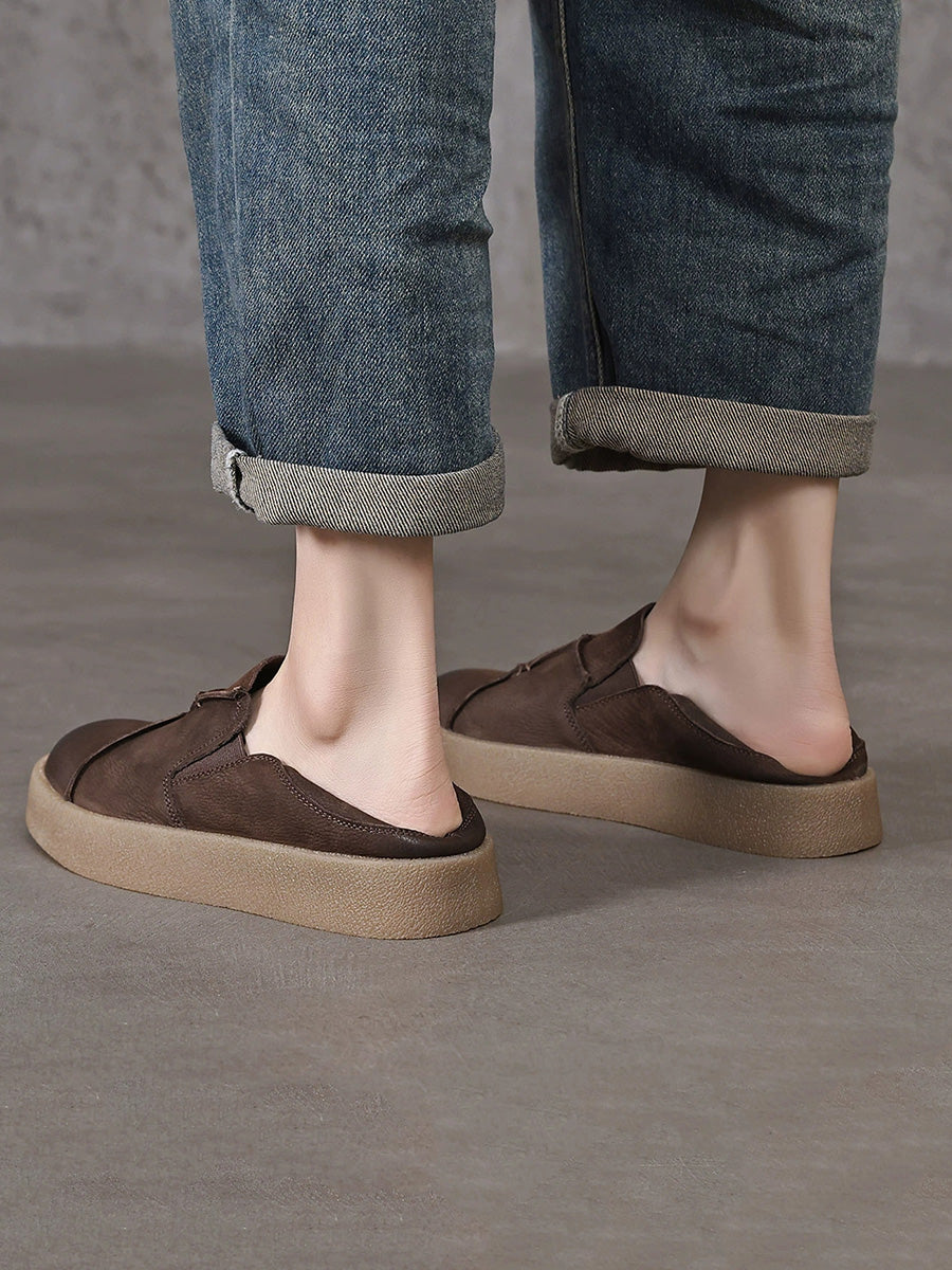 Dame Vår Uformelle Flate Sko i Ekte Lær