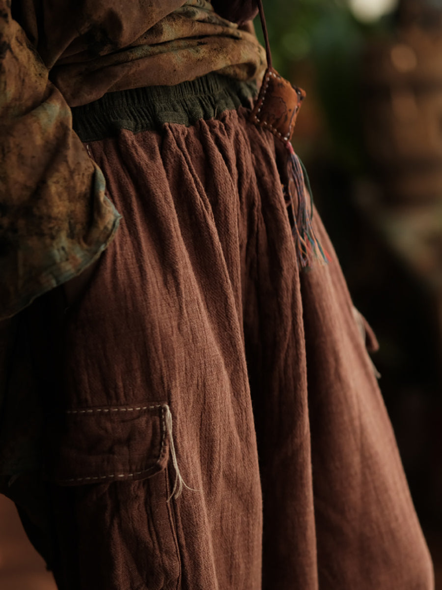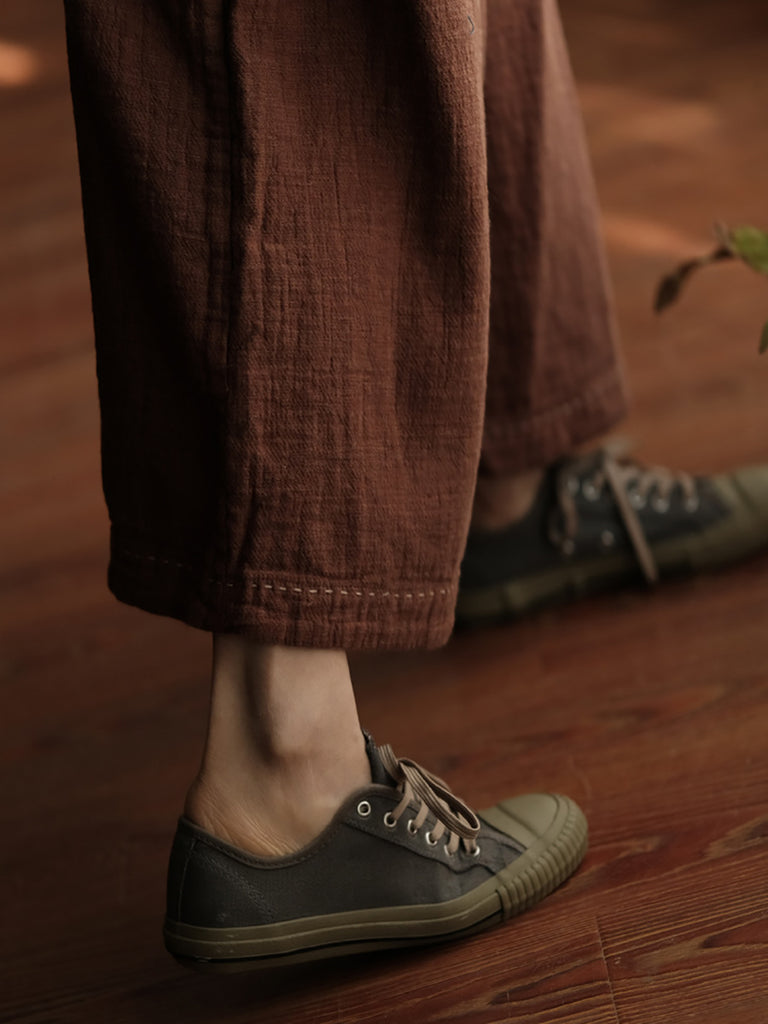 Kvinner våren Retro ren farge bomullssøm Bukser med vidde ben