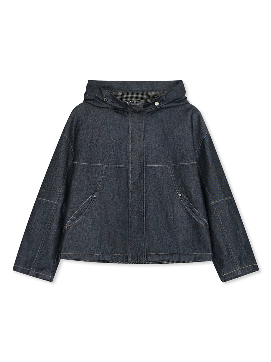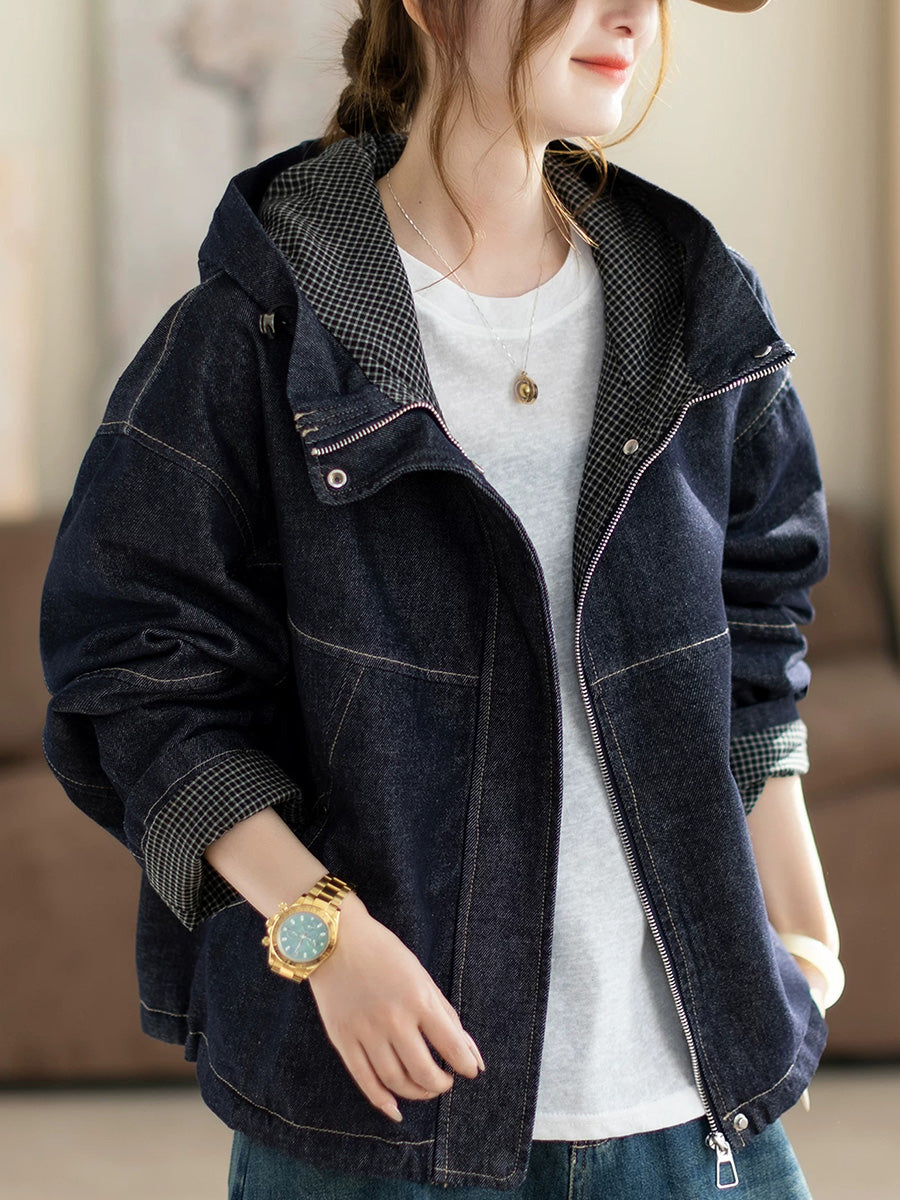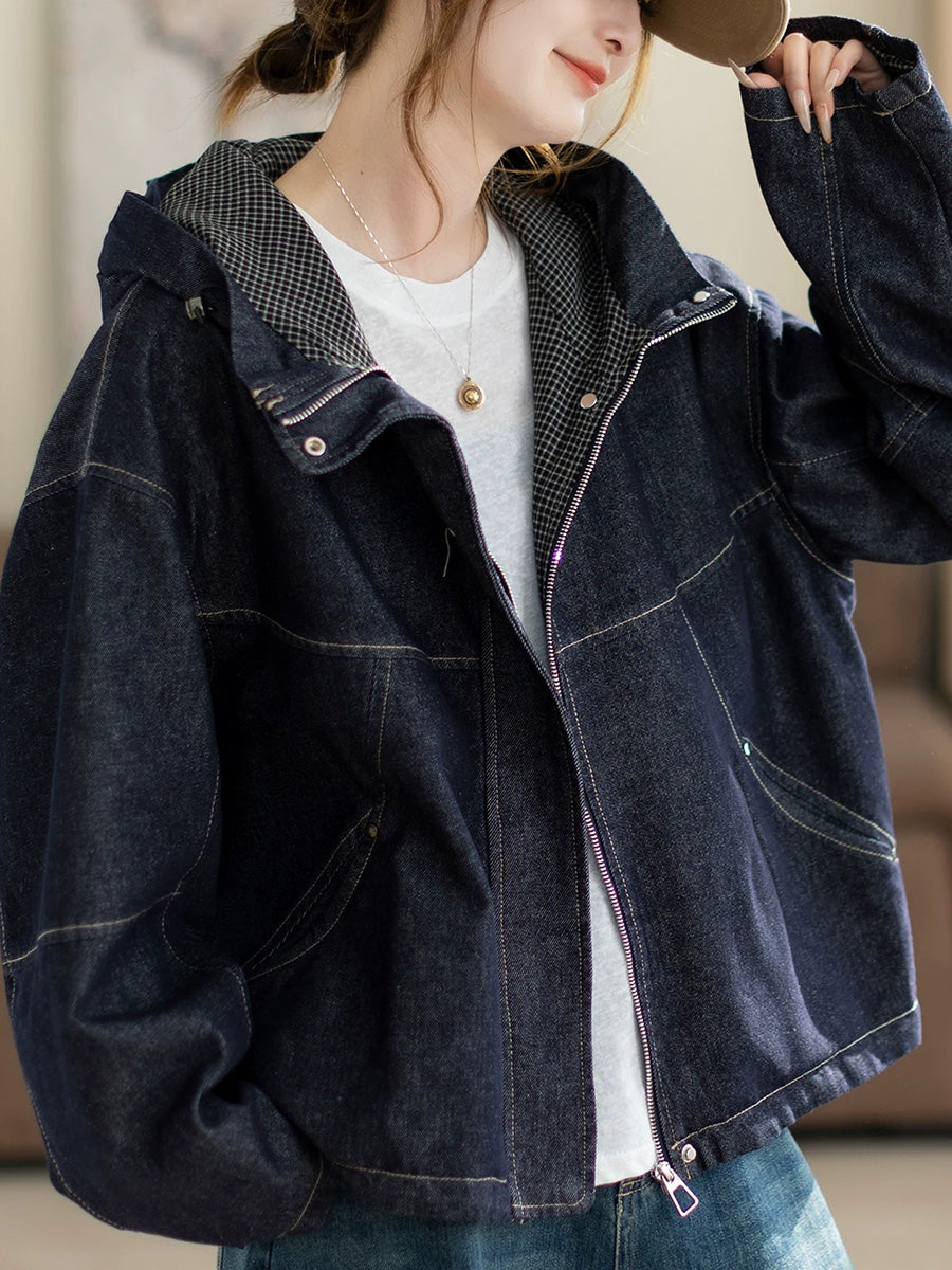 Dame vår retro ren farge denim hettejakke