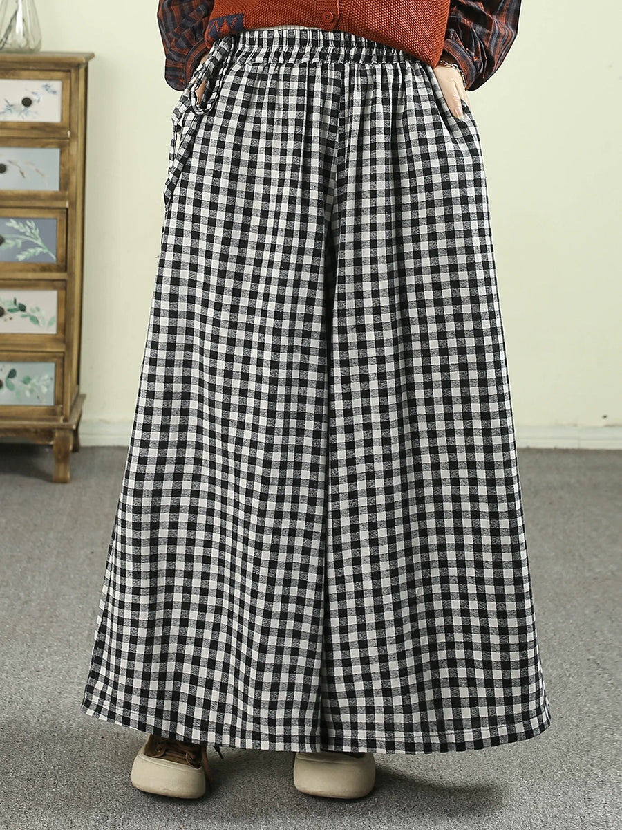 Dame Vår Vintage Rutete Bukser med Vide Ben