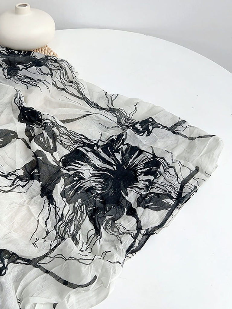 Women Summer Flower Tassel Cotton Shawl Scarf