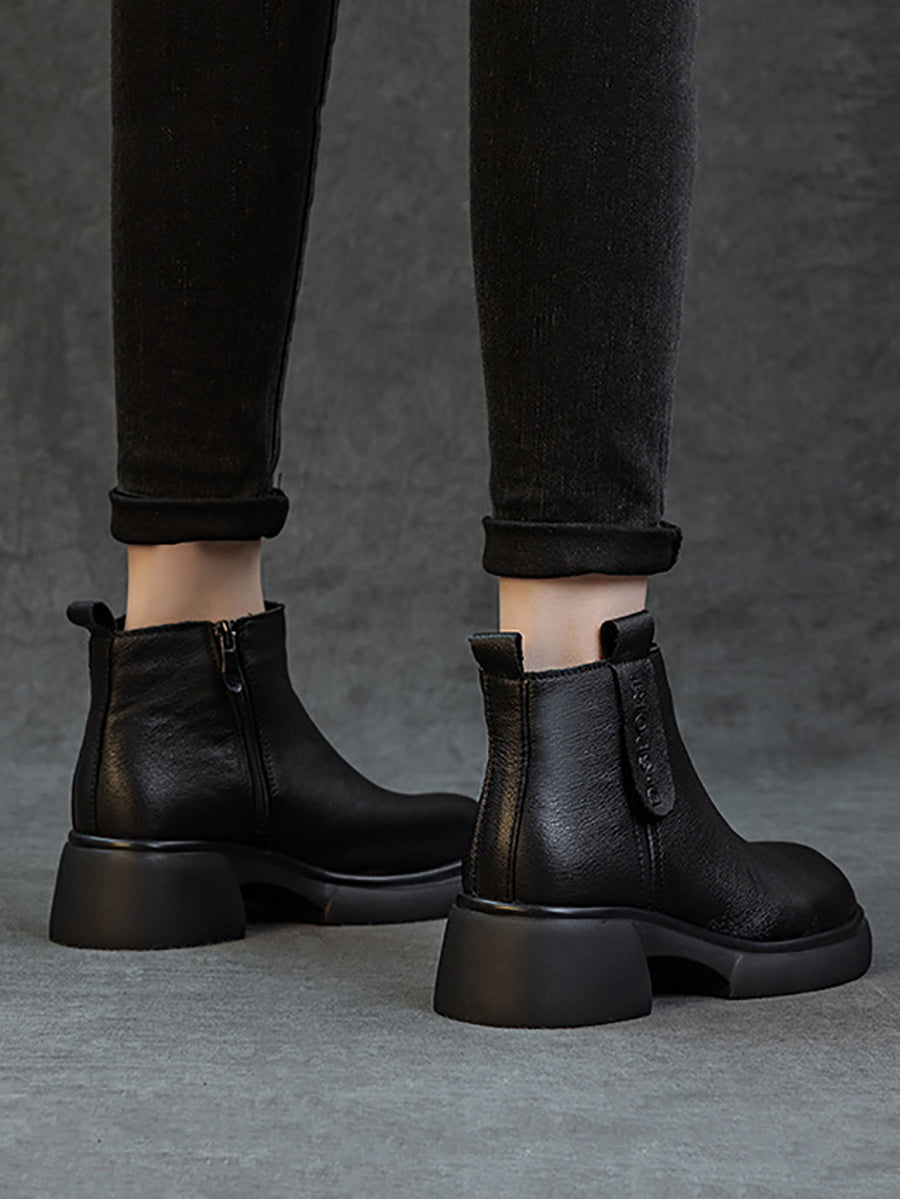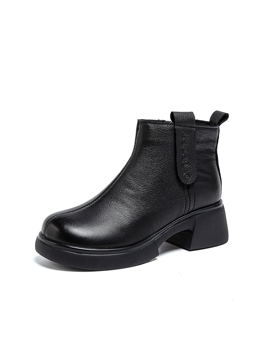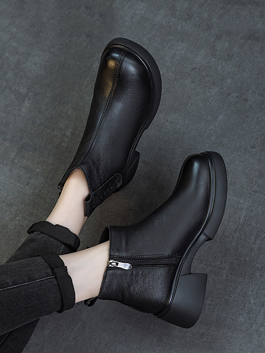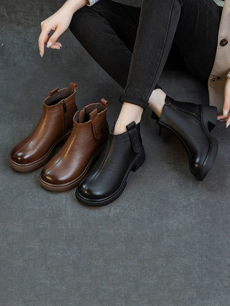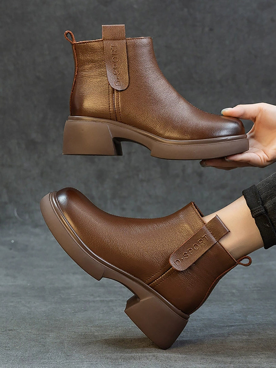 Dame vintage ankelstøvletter i ekte skinn med mellomhøy hæl