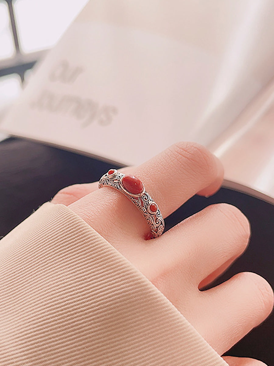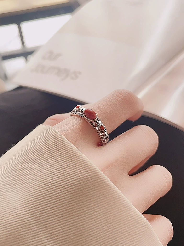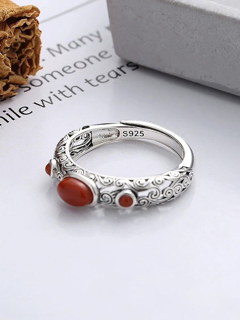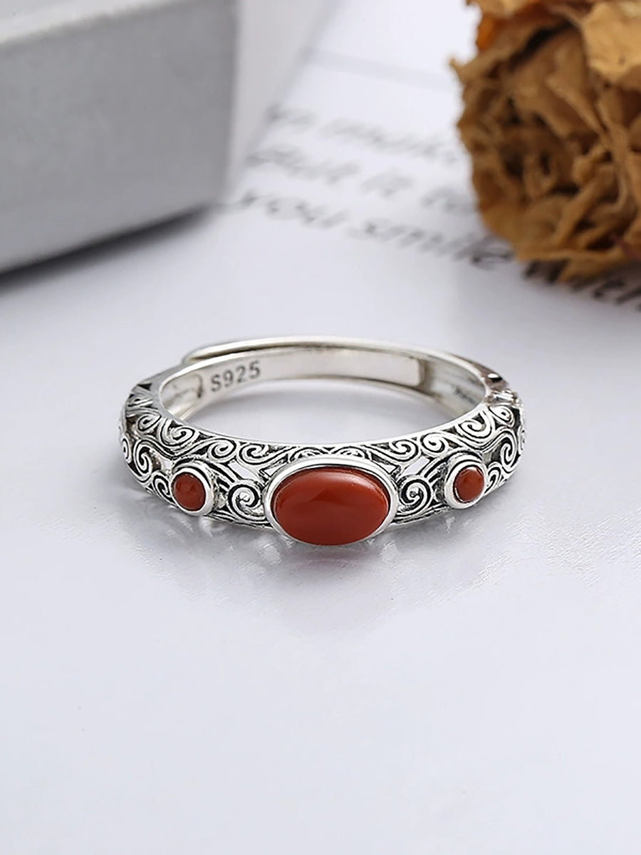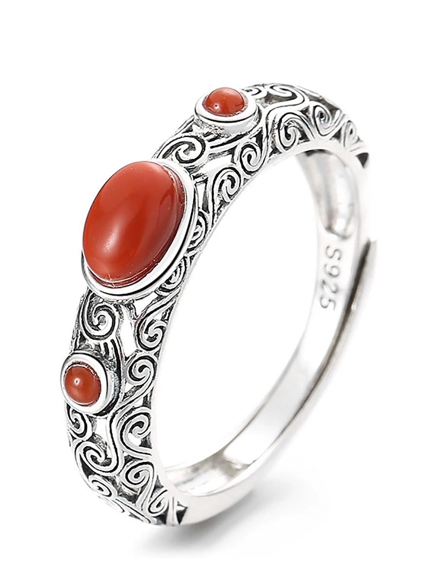 Justerbar ring i rød agat i sølv fra S925-serien til dame