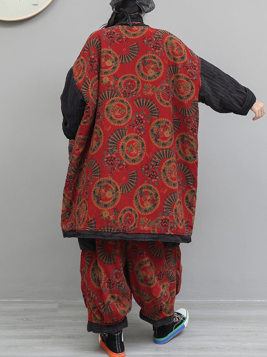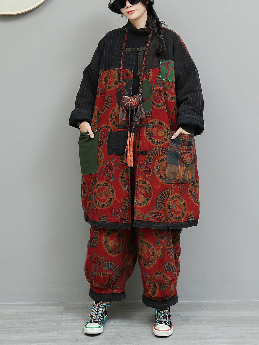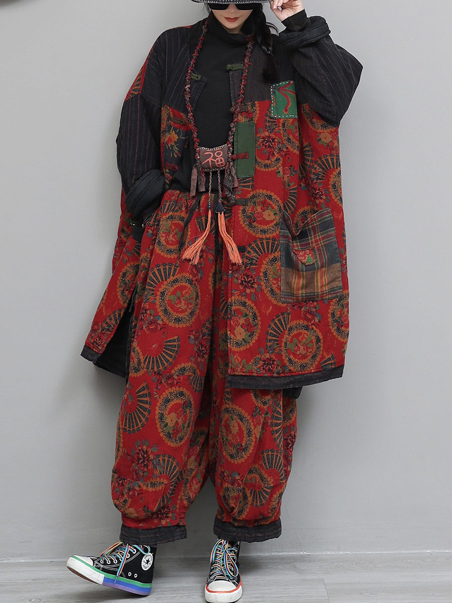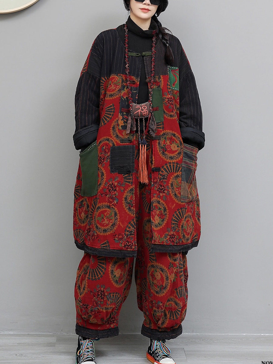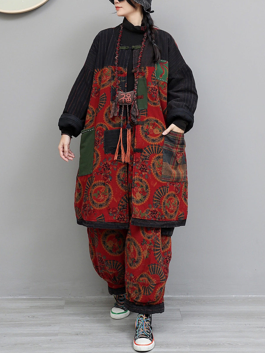 Dame vinter retro lappeteppe O-hals polstrede dresser