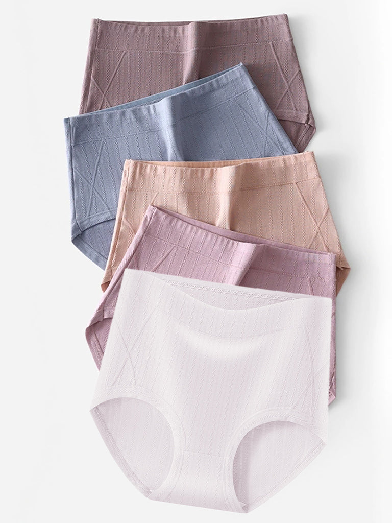 5 deler dameundertøy med høy midje, avslappet i ren farge